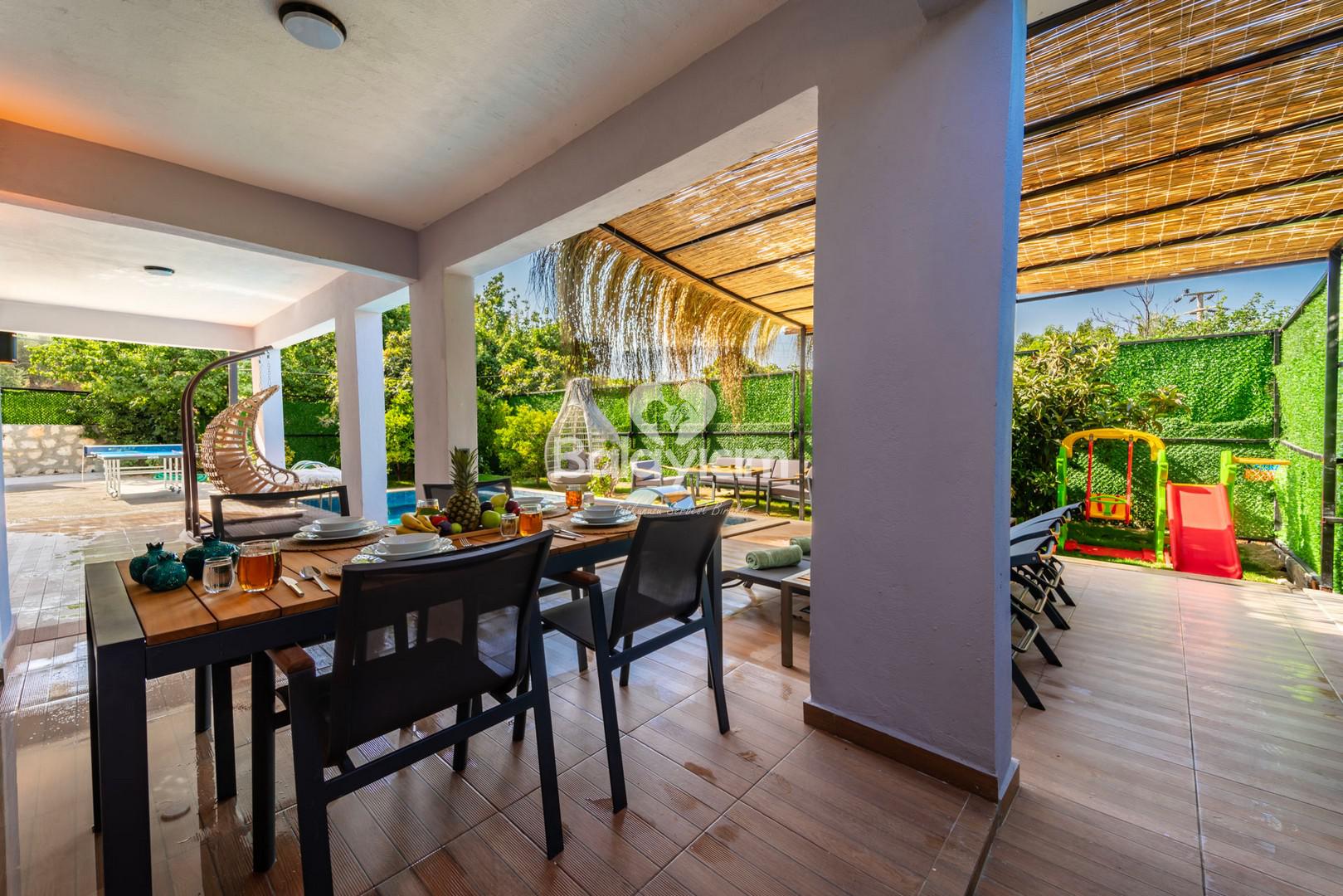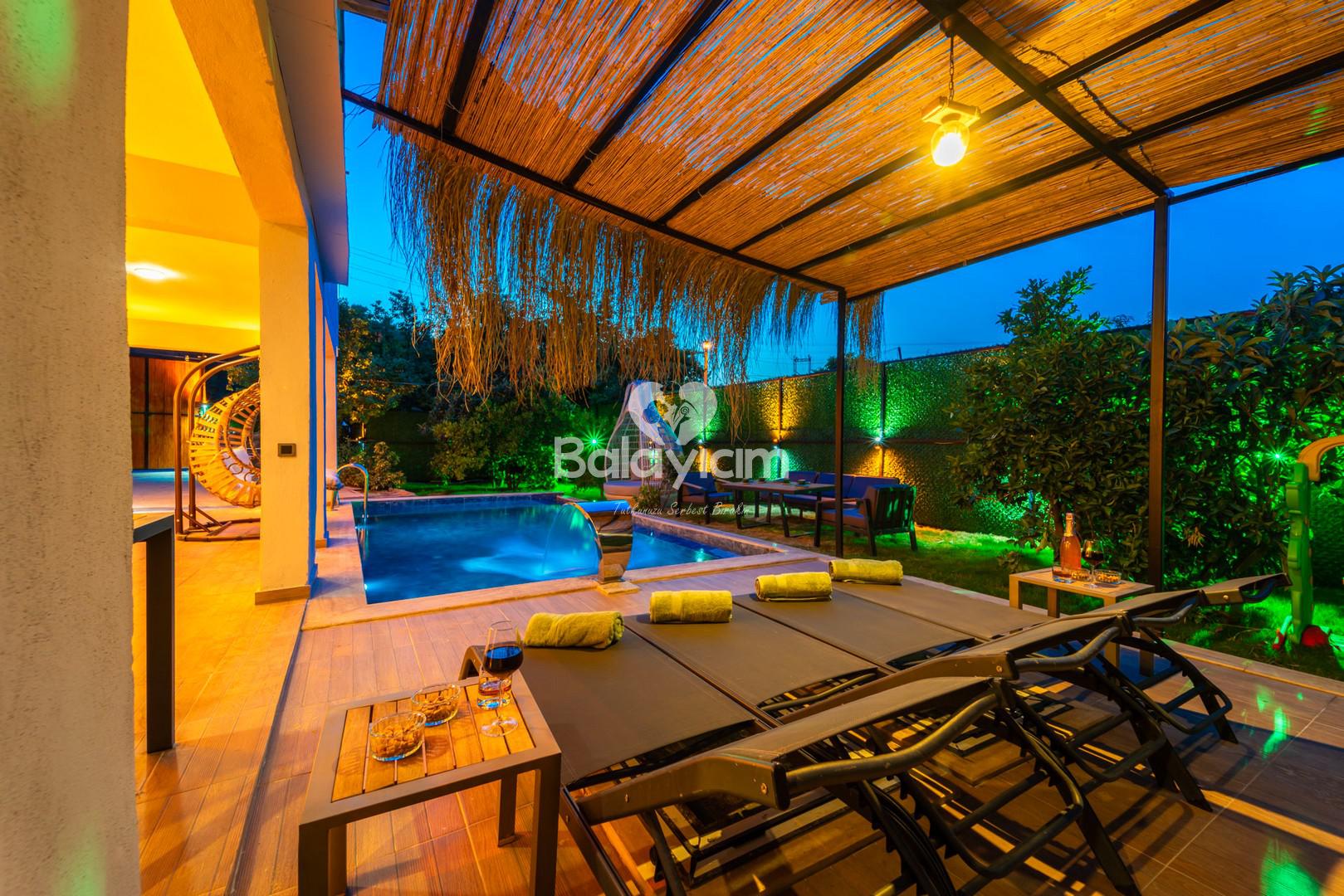 Villa Okyanus Garden, sitemizde bulunan Villa Okyanus Duo'nun alt katında yer alıyor. Giriş ve çıkışları tamamen bağımsız olup, havuz alanınız sadece sizin!