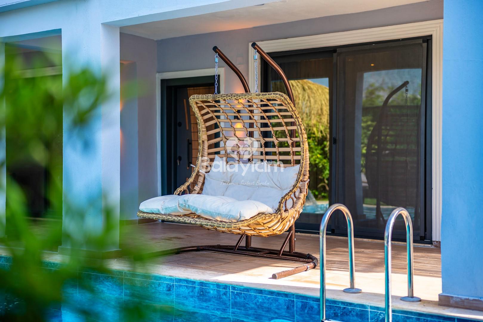 Villamızın en özel özelliği tamamen korunaklı havuz terasıdır. Dışarıdan görünmeyen bu özel alan, size ve sevdiklerinize tam bir mahremiyet sunuyor.