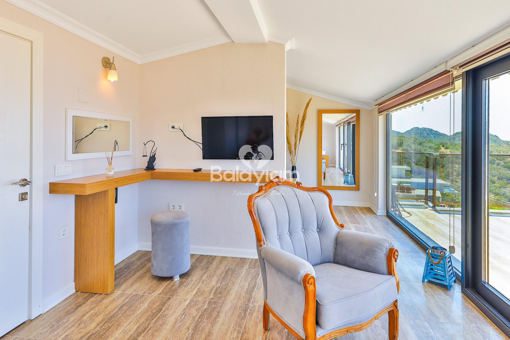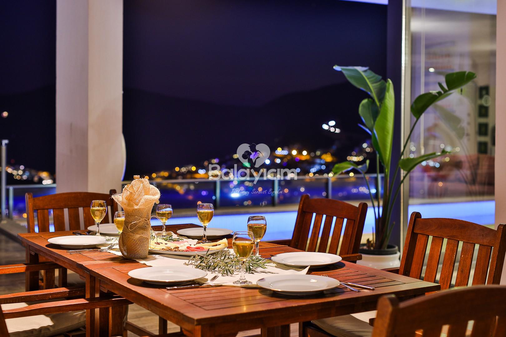 Bu dubleks yapıdaki lüks villa, modern dekorasyonu ve ev konforunu aratmayacak ambiyansıyla sizleri büyüleyecek.