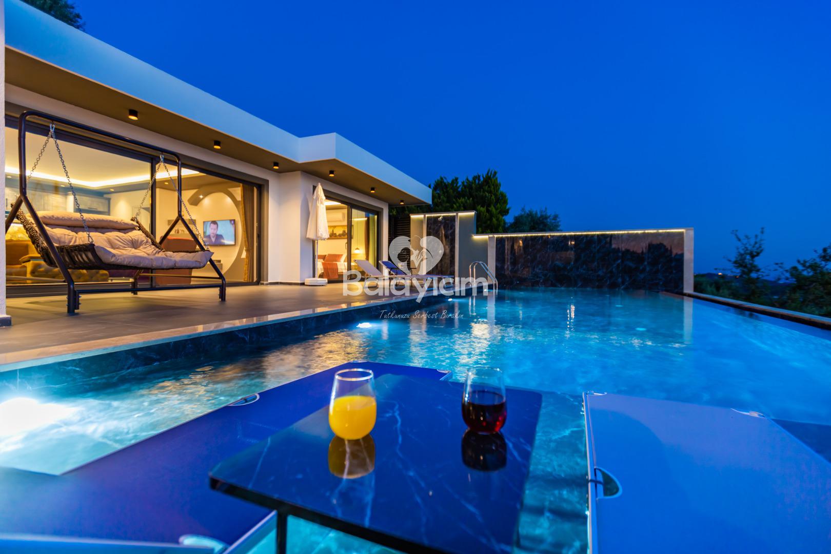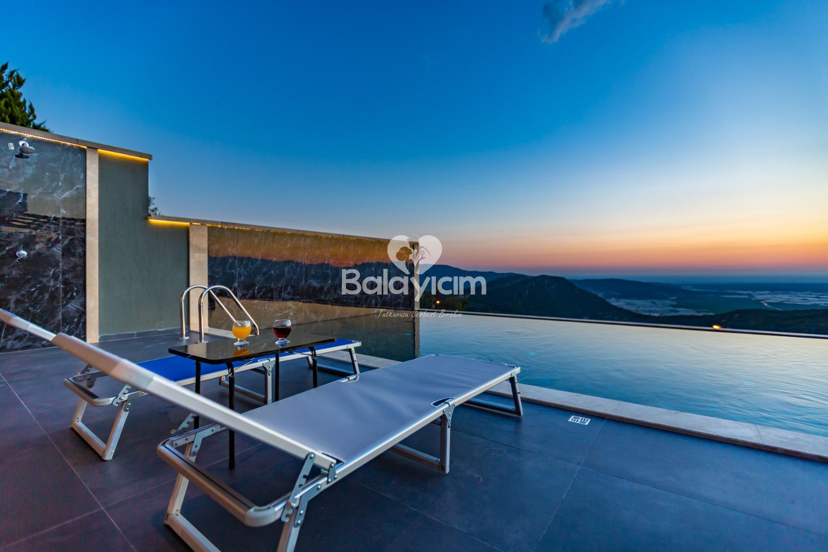 🛁 Jakuzili Ana Yatak Odası Ebeveyn yatak odasındaki özel jakuzide, muhteşem manzaraya karşı dinlenmenin keyfini çıkarın. Gün boyu yaşadığınız güzel anıları, akşam saatlerinde sıcak suda gevşeyerek taçlandırın.