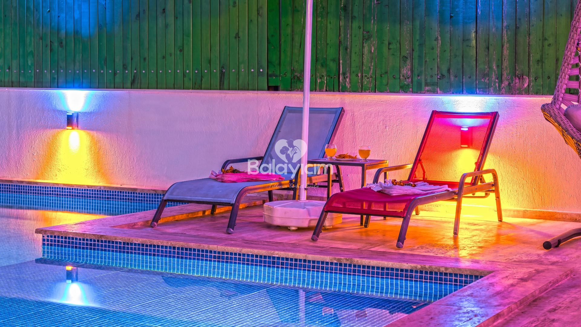 🏊♀️ Korunaklı Özel Havuz: Dışarıdan görünmeyen, sadece ikinize ait romantik yüzme keyfi