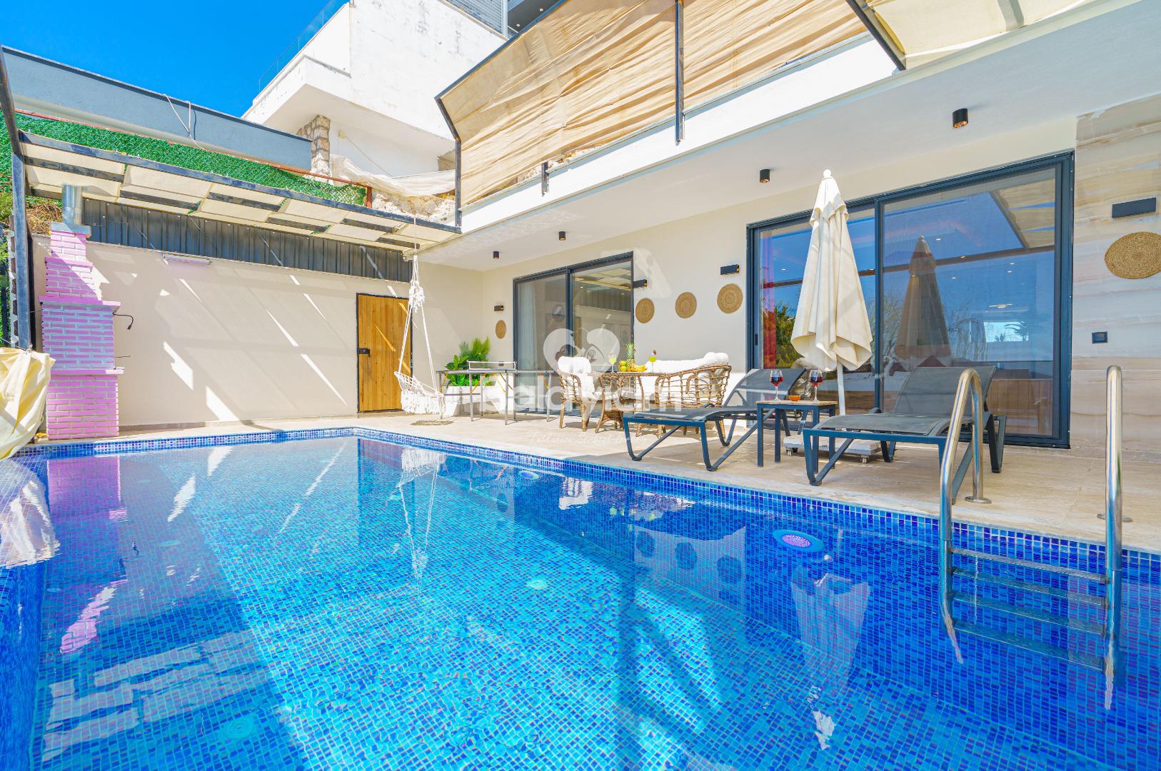 Kalkan'ın büyüleyici Kördere mevkiinde, sadece ikinizin olacağı masal diyarı sizi bekliyor! Villa İlkim, yeni evli çiftler için özenle tasarlanmış, romantizmin her köşesine sindiği eşsiz bir balayı villası.