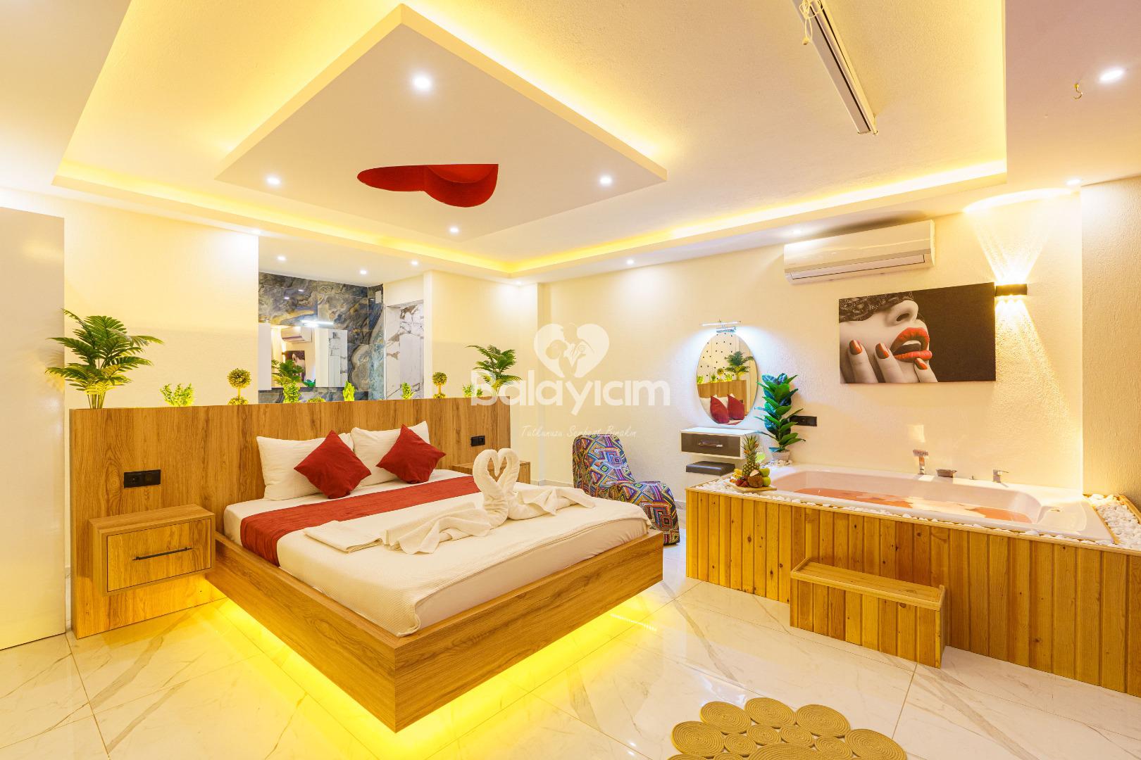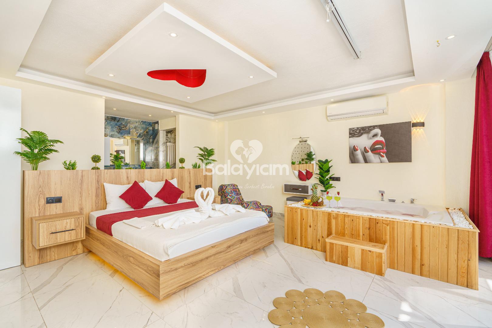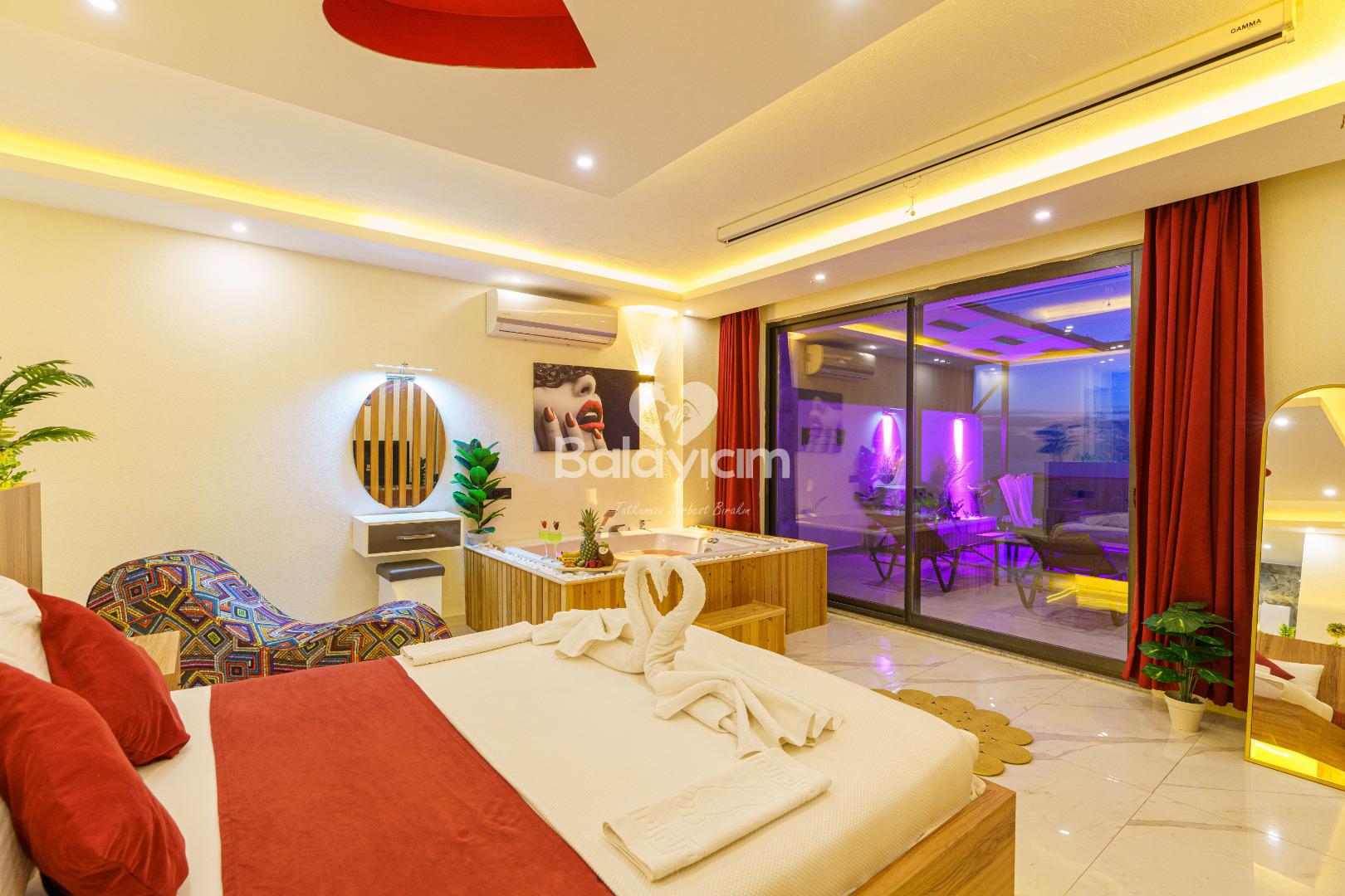 İki kişilik bu özel mekân tamamen sizin! Tek yatak odası ve özel banyosuyla, baş başa kalmanın tadını çıkaracaksınız. Villa İlkim'in iç dekorasyonu tek kelimeyle muhteşem - her detay özenle seçilmiş, her köşe aşkınızı yansıtacak şekilde düzenlenmiş.