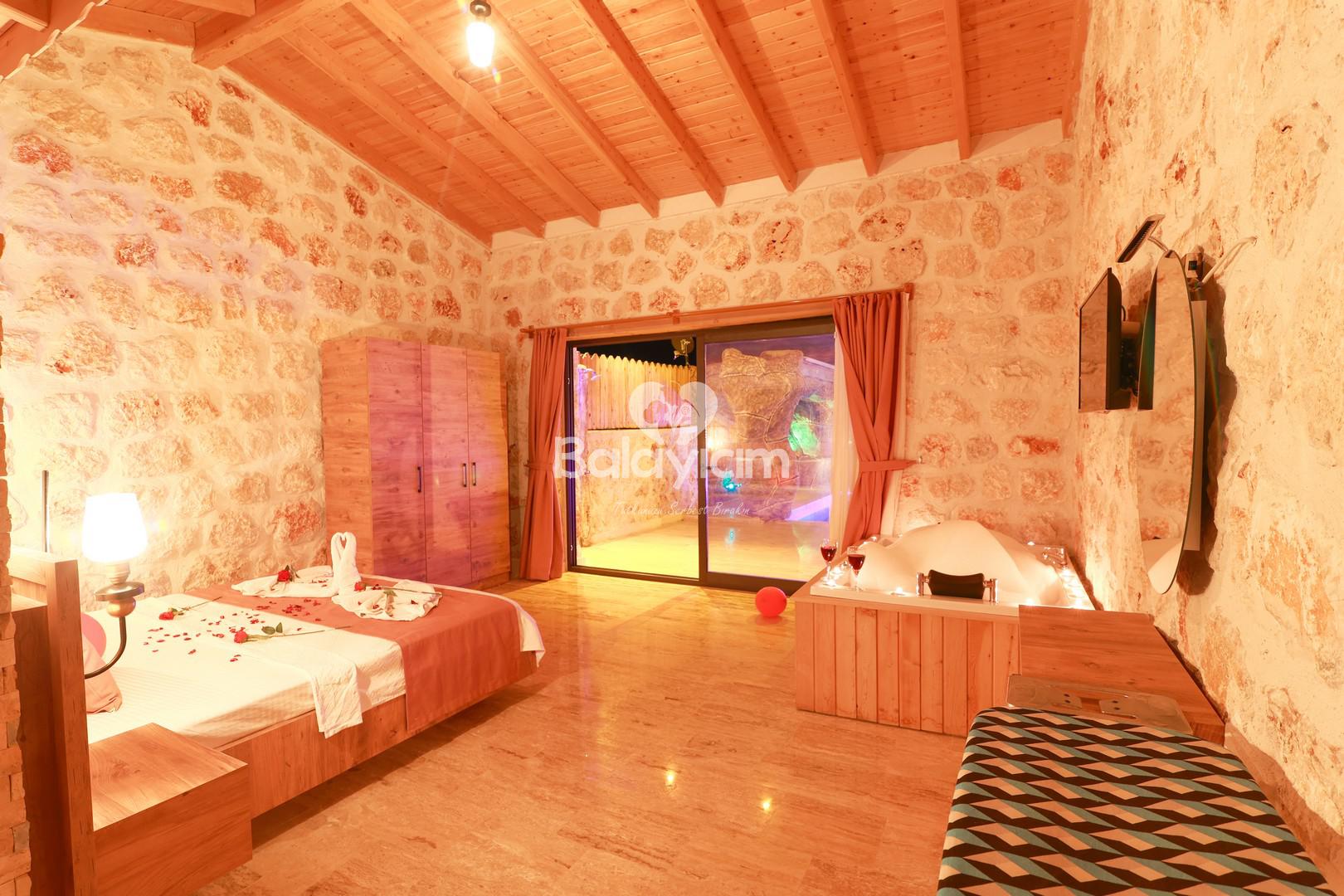 Yatak odanızda özel jakuzide sevdiğinizle baş başa kalırken, günlük hayatın koşturmacasından uzaklaşın. Bu özel anlar, balayı çiftleri için unutulmaz romantik deneyimler yaratıyor.