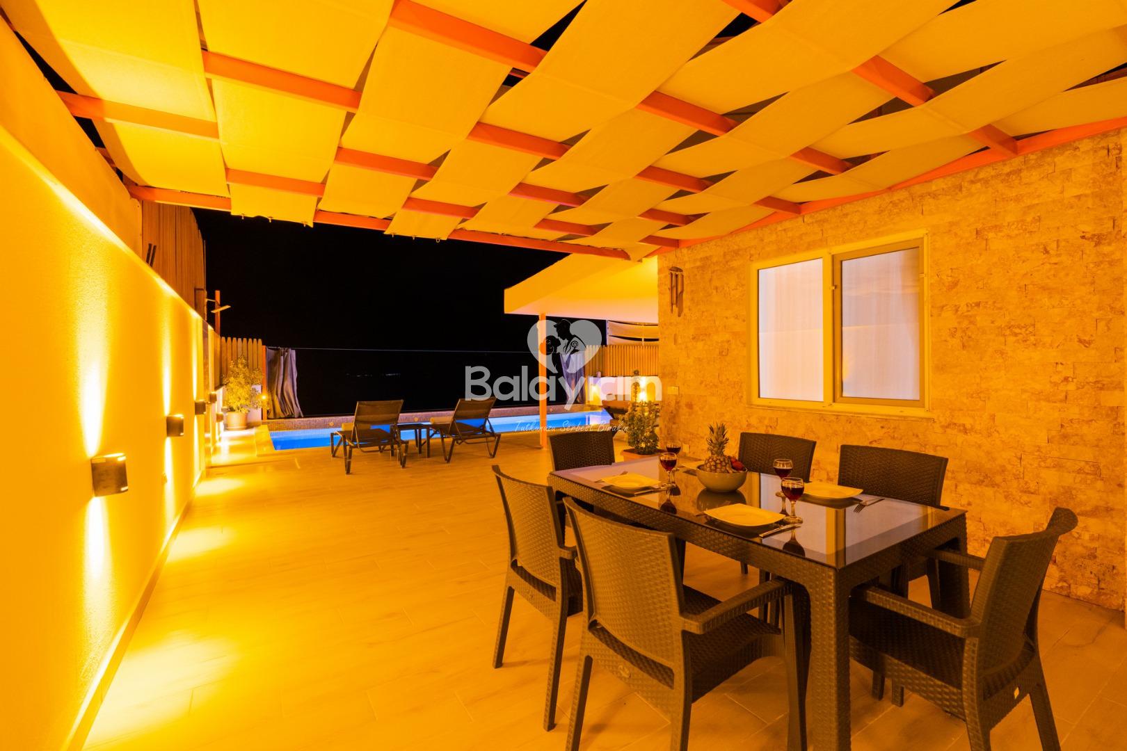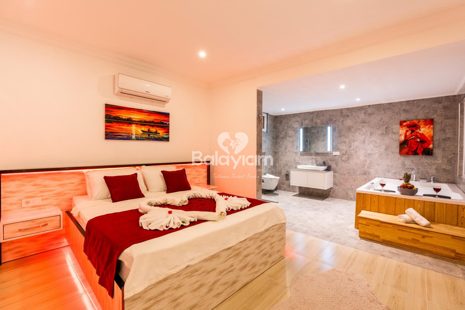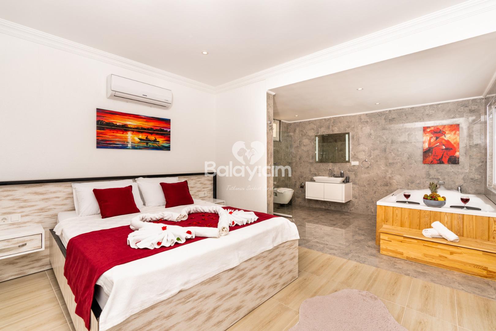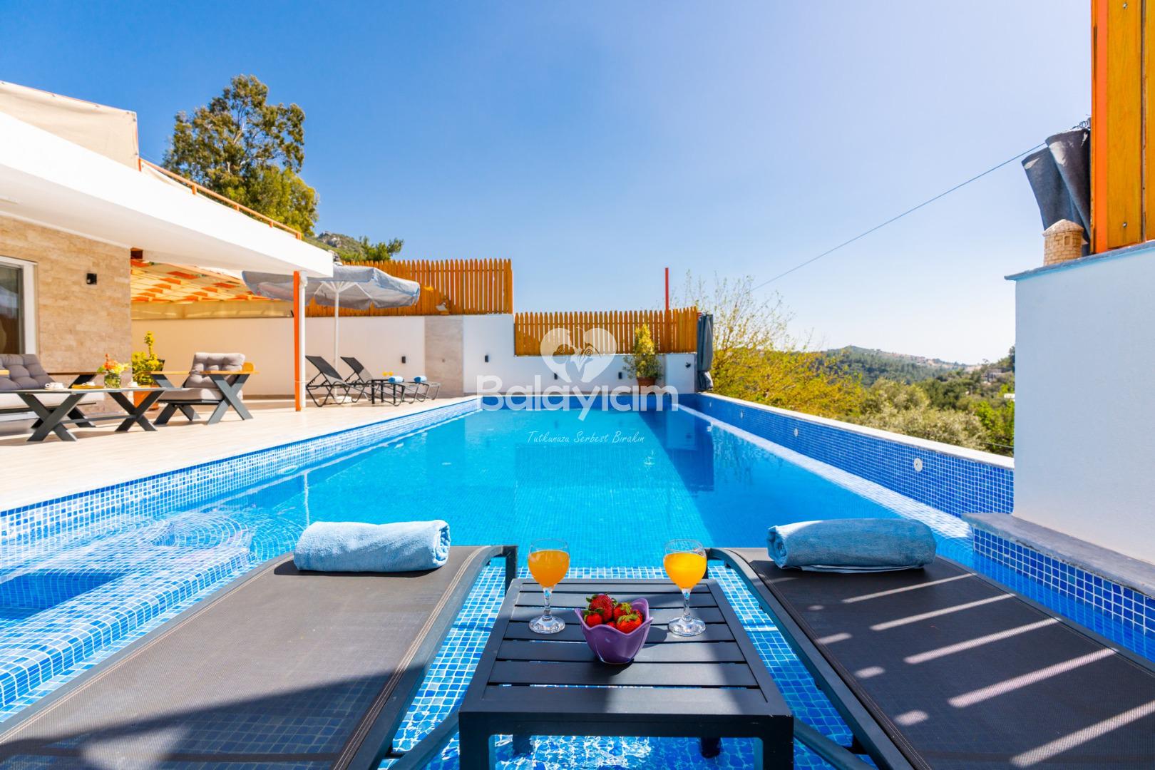 Villa Lara 1, Kalkan İslamlar köyünde konumlanmakta olan yeşilliklerle kaplı doğa manzarasına hakim kiralık villalarımız arasında yer almaktadır. Lüks ve modern bir şekilde dekore edilen yazlık villamızda 2 adet yatak odası bulunmakta olup 4 kişiye konaklama imkanı sağlamaktadır. Yatak odalarından bir tanesinin içerisinde tüm yılın vermiş olduğu yorgunluğu giderebileceğiniz jakuzi yer almaktadır. Her bir detayın en ince ayrıntısına kadar düşünüldüğü kiralık villamızın havuz ve havuz terası korunaklı hale getirilmiştir. Muhafazakar aileler, balayı çiftleri ve çekirdek aileler rahatlıkla tercih edebilirler. Aynı zamanda villamızda dış özel yüzme havuzuna entegre sığ havuz ve çocuk havuzu bulunmaktadır. Sessizlik ve sakinlik içerisinde huzur dolu bir yazlık villada tatil için Villa Lara 2’ i tercih edeblilirsiniz.