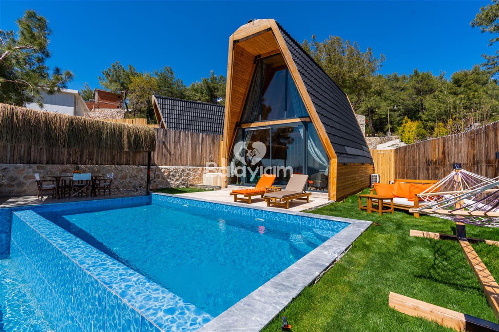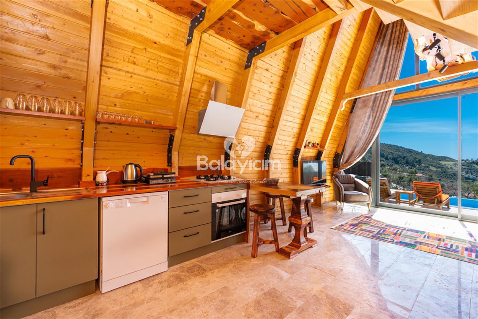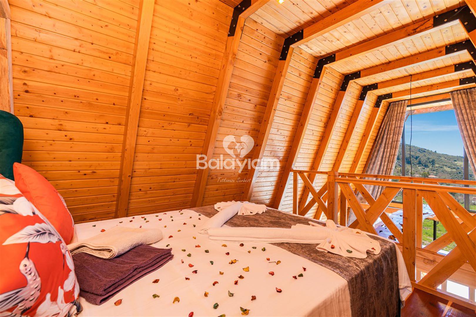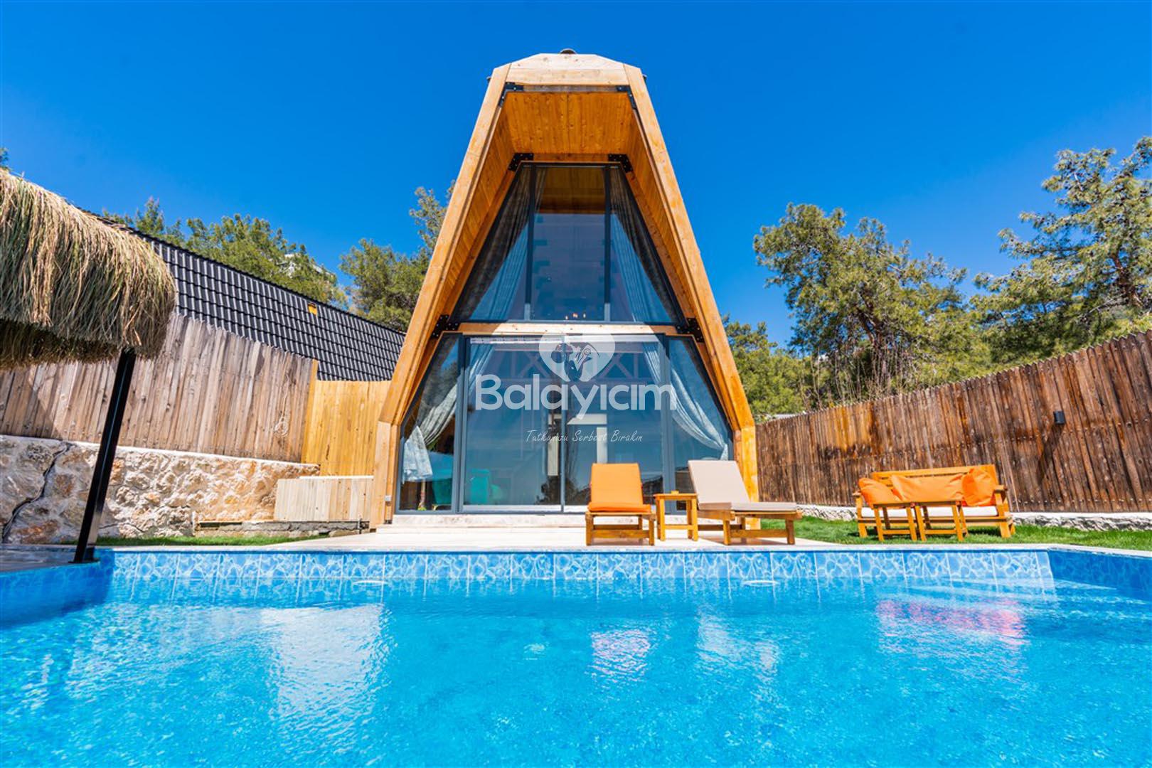 Kalkan İslamlar mevkiinde, balayı çiftleri için özel olarak tasarlanmış bir cennet sizi bekliyor! Villa Pedro, ahşap modern dış tasarımıyla dikkat çeken bu eşsiz bungalov, doğanın kucağında huzur dolu bir tatil deneyimi sunuyor.