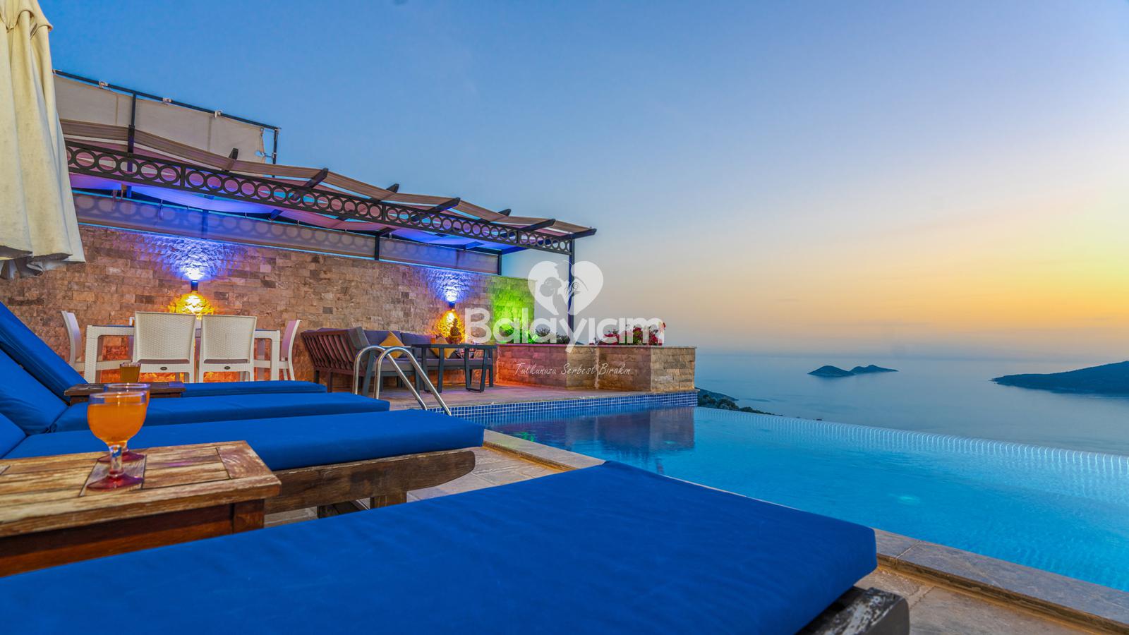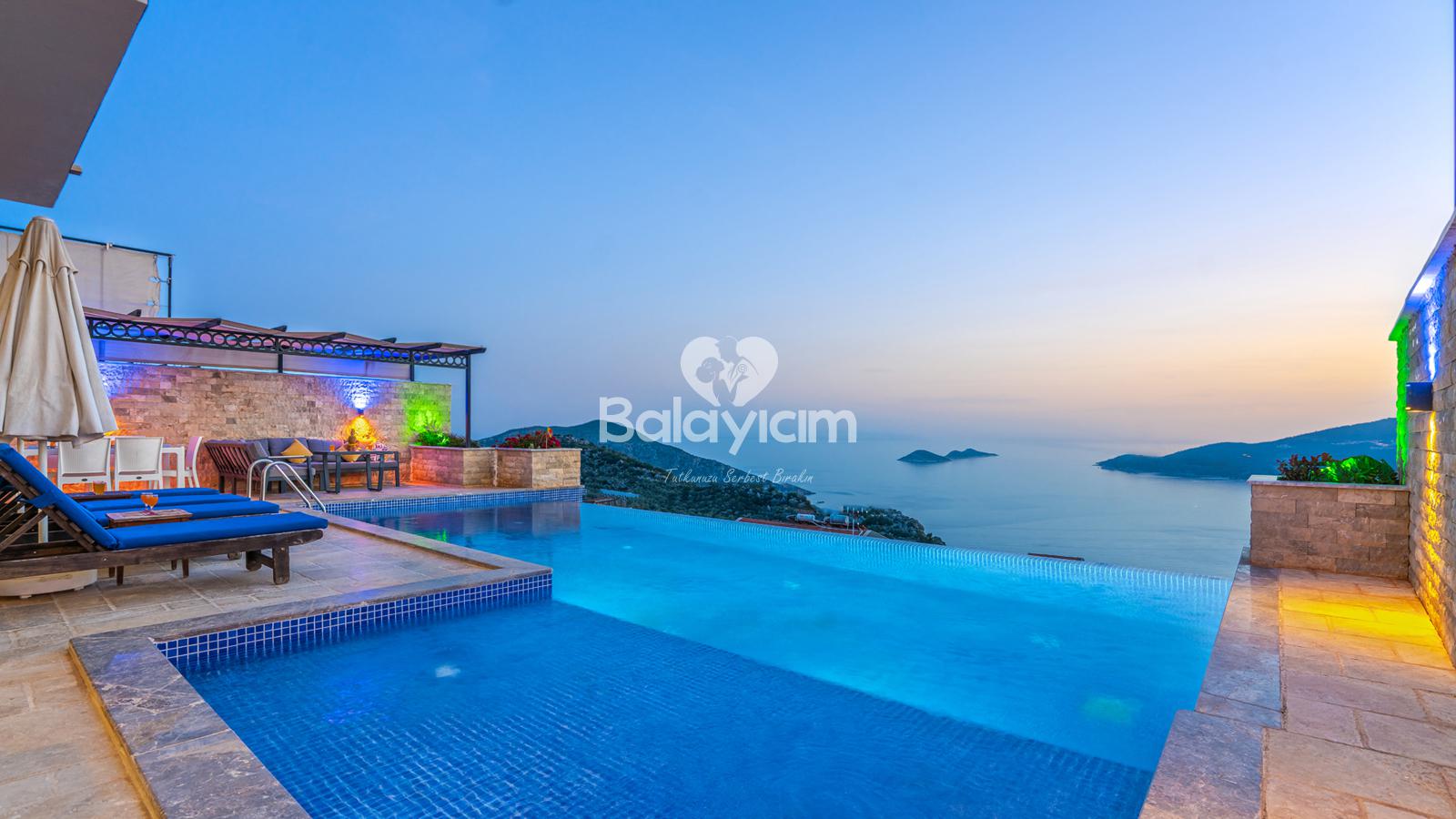 Villamız, dışarıdan görünmeyecek şekilde tasarlanmış havuz alanı ve bahçesi ile tam bir mahremiyet sunuyor. Kalkan körfezinin ortasında hissetmenizi sağlayan bu muhteşem villa, tatilinizi unutulmaz kılmak için her detayı düşünülerek tasarlandı.