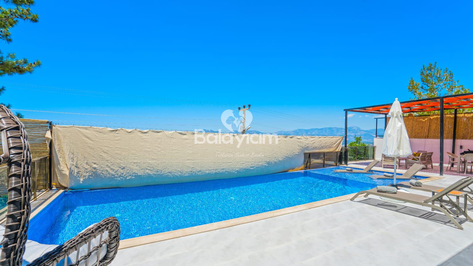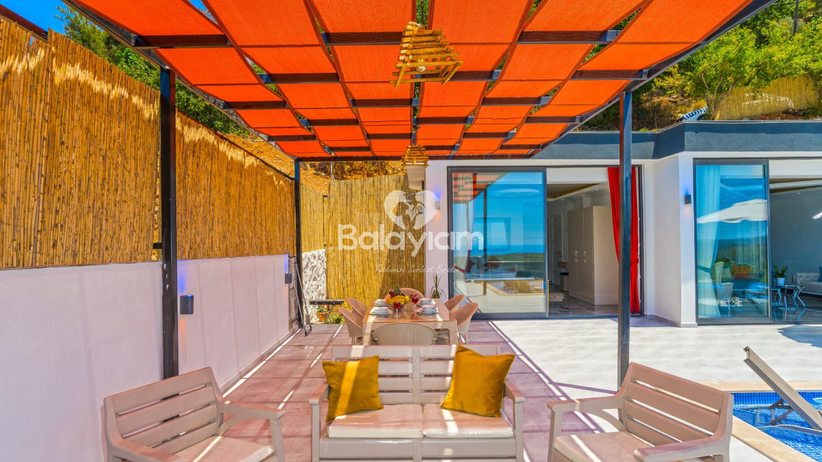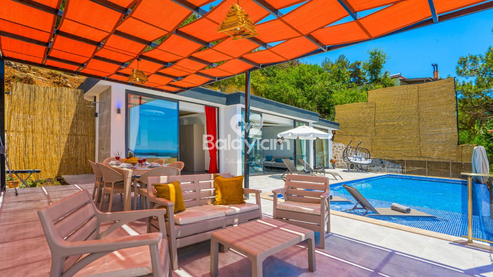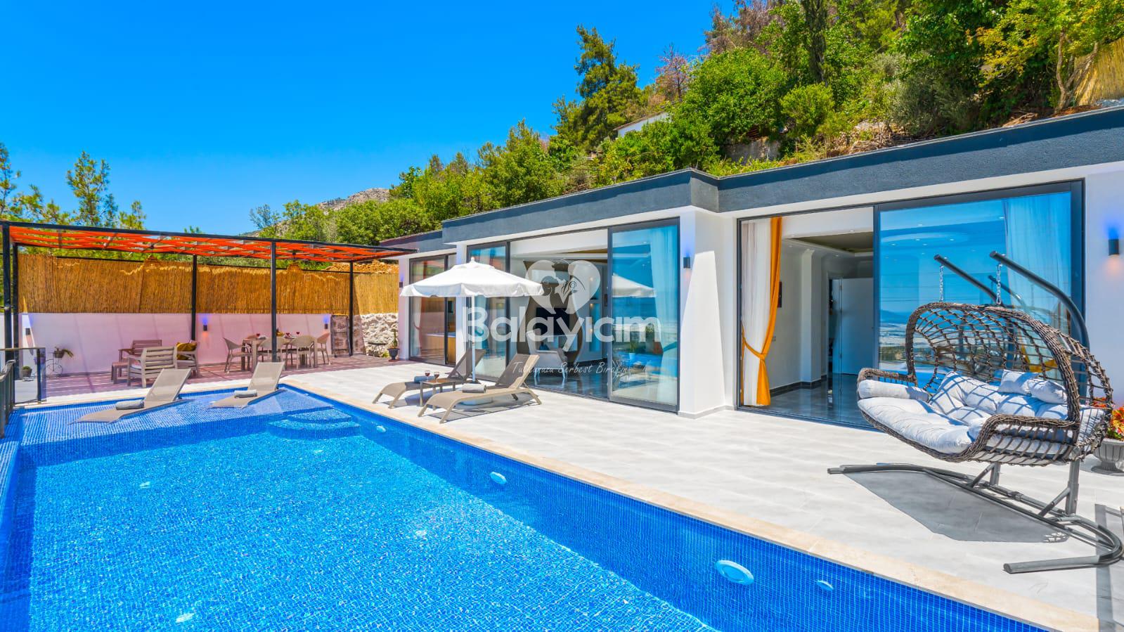 Kalkan'ın huzurlu Üzümlü bölgesinde, size özel bir cennet hayal edin! Villa Piyon, 2022 yılında tamamlanmış modern konforu ile balayı çiftleri ve muhafazakar aileler için mükemmel bir sığınak sunuyor. 🏡