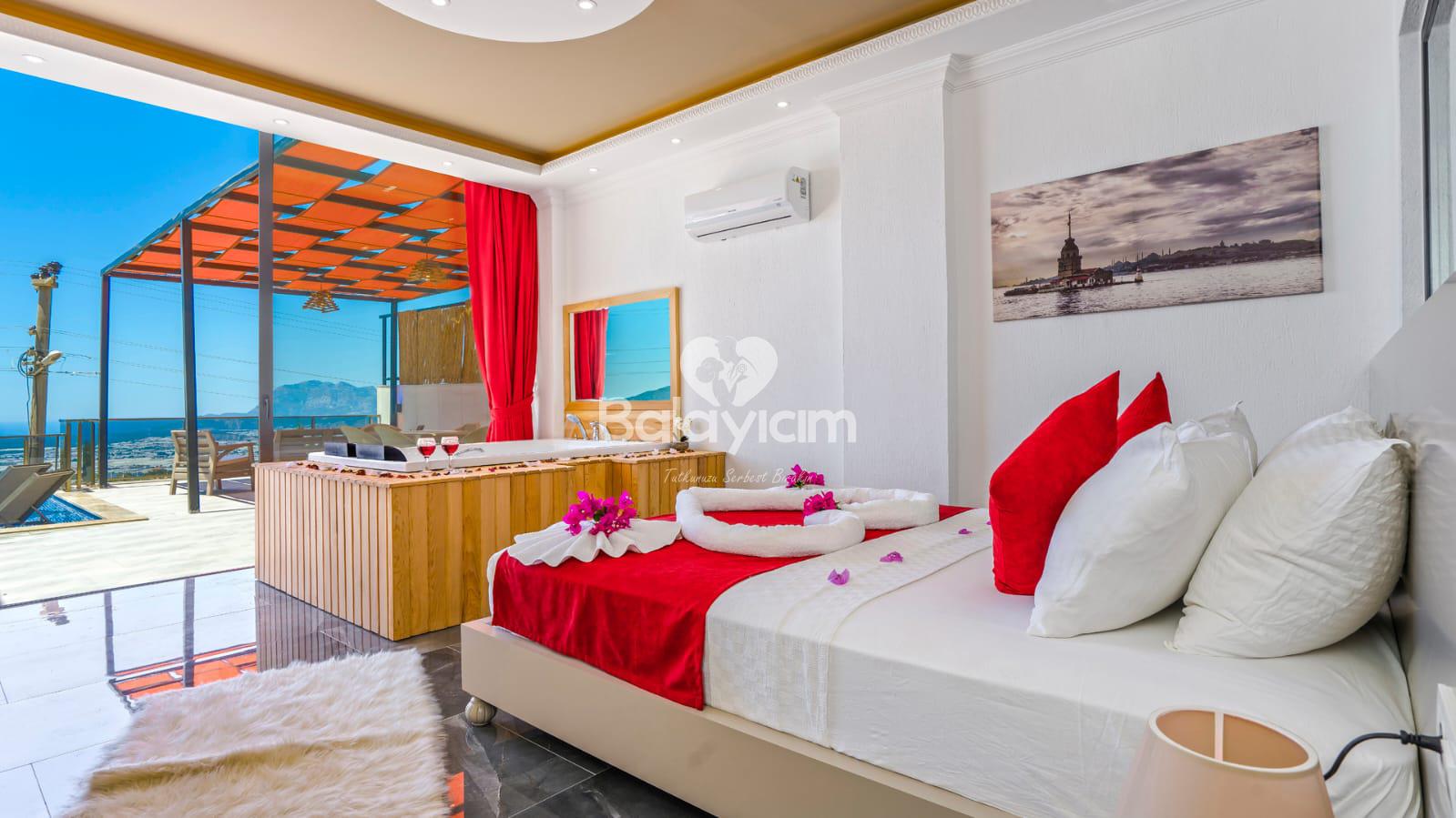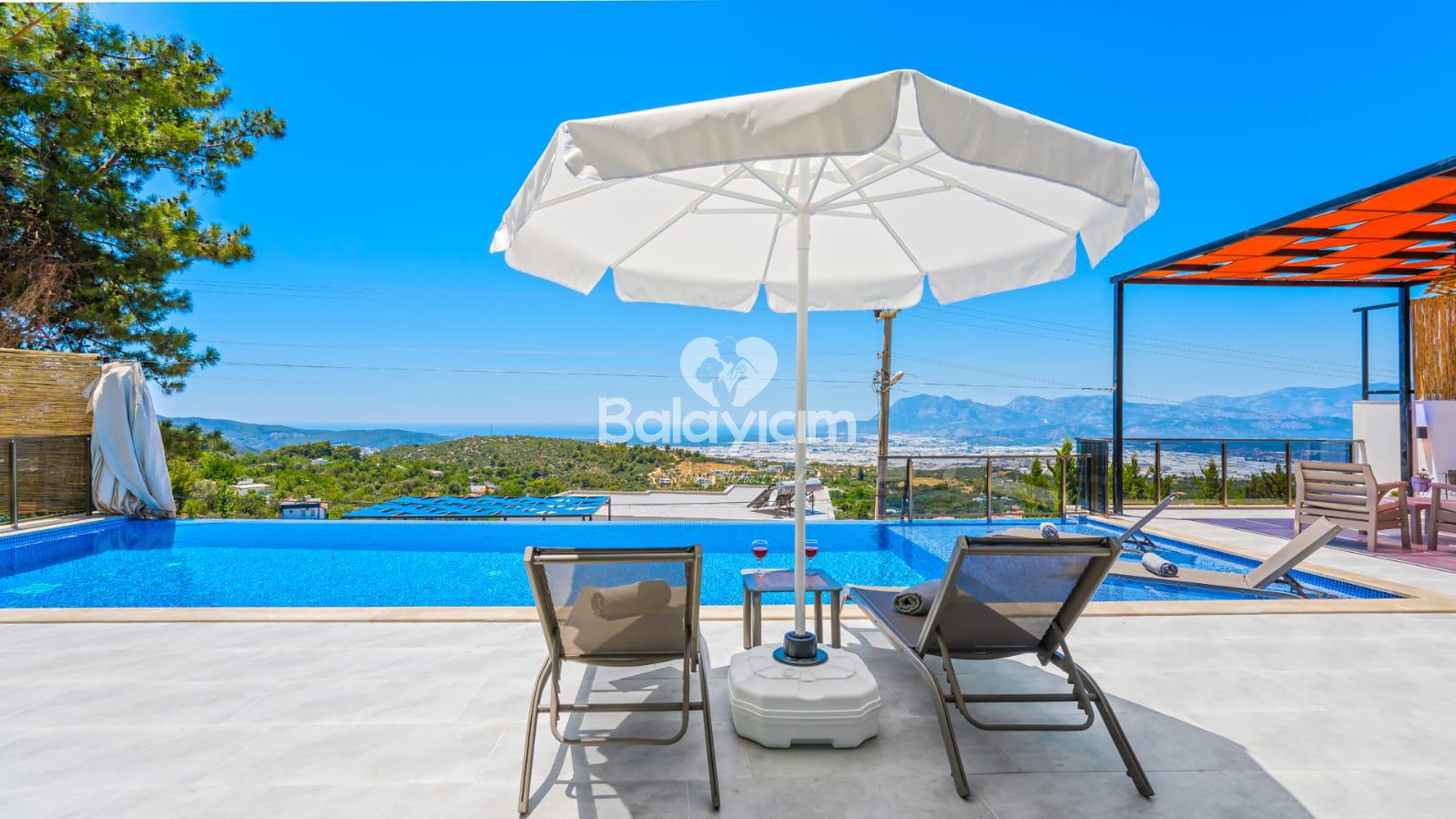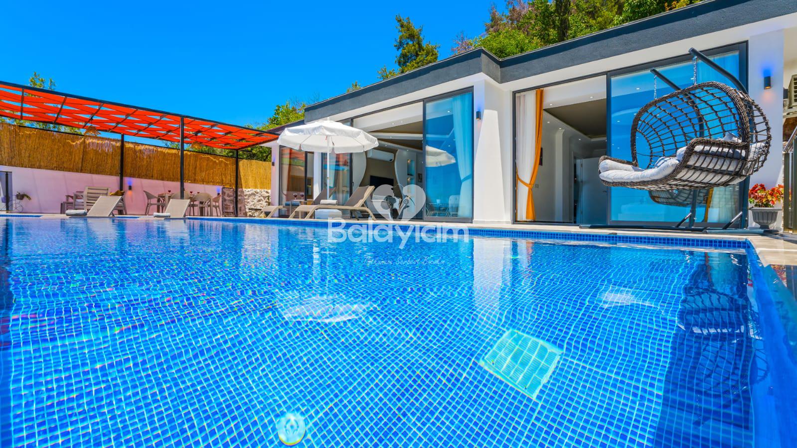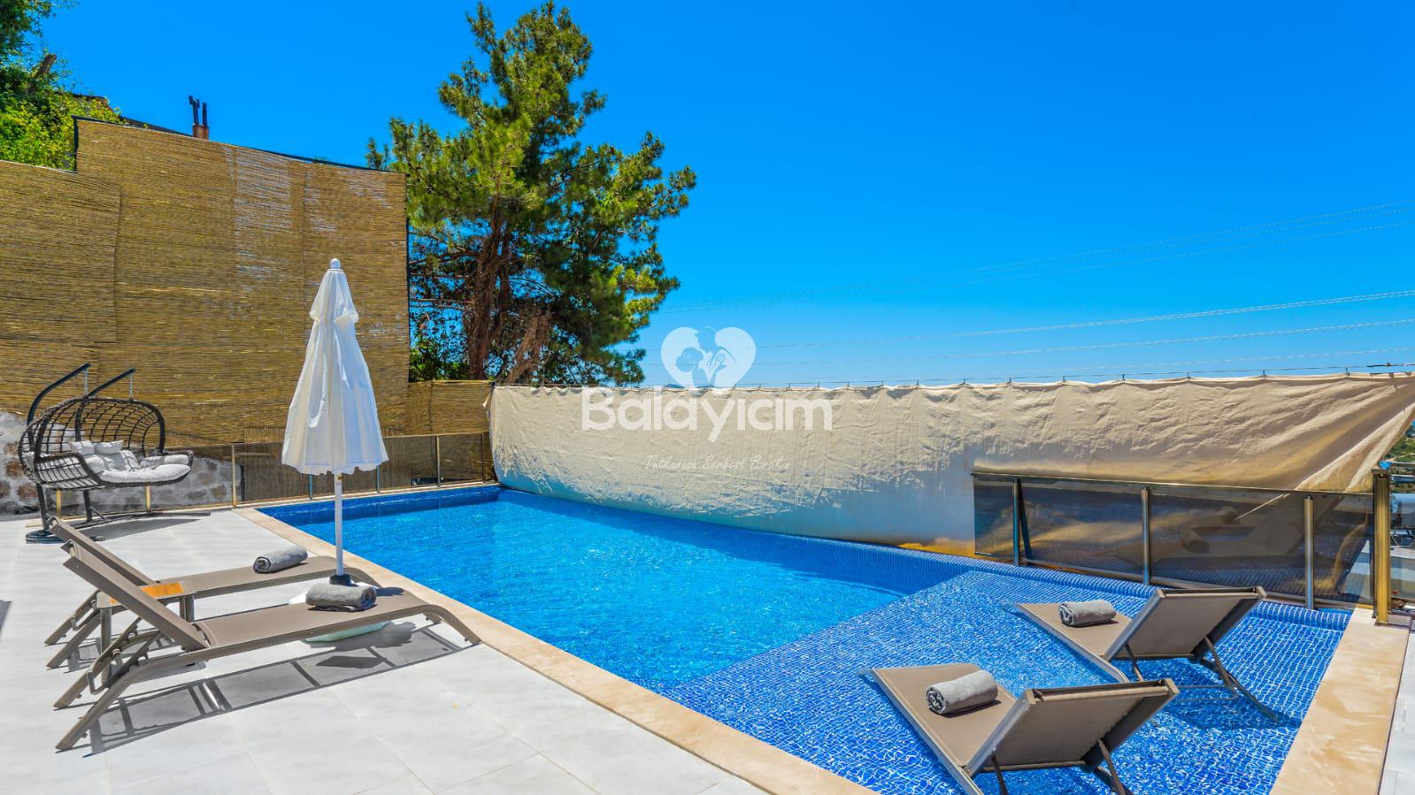 Kalkan'ın huzurlu Üzümlü bölgesinde, size özel bir cennet hayal edin! Villa Piyon, 2022 yılında tamamlanmış modern konforu ile balayı çiftleri ve muhafazakar aileler için mükemmel bir sığınak sunuyor. 🏡