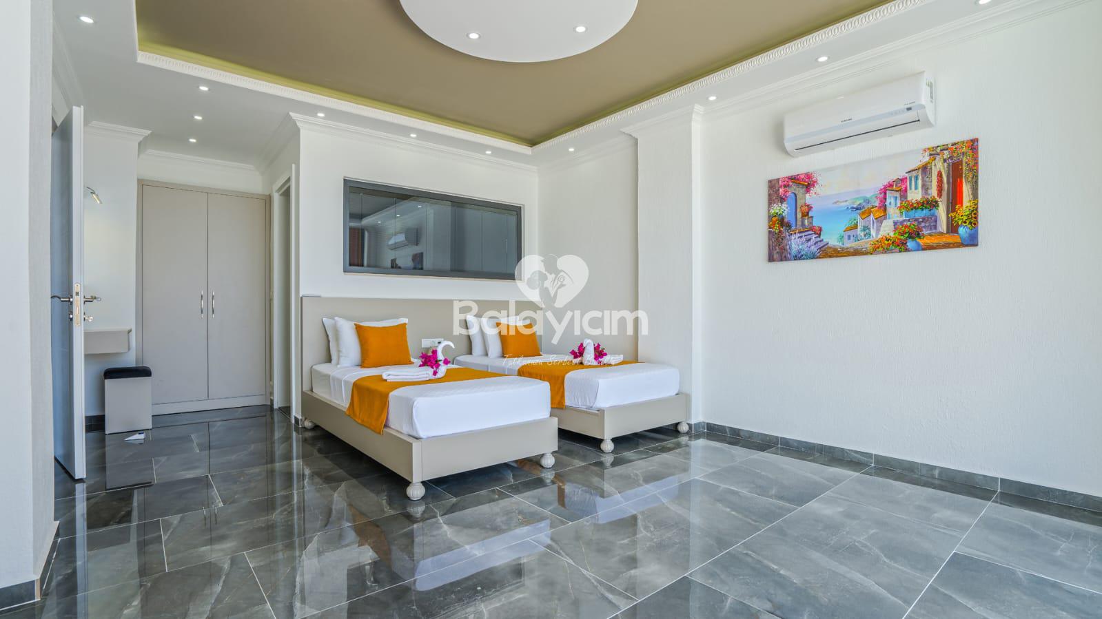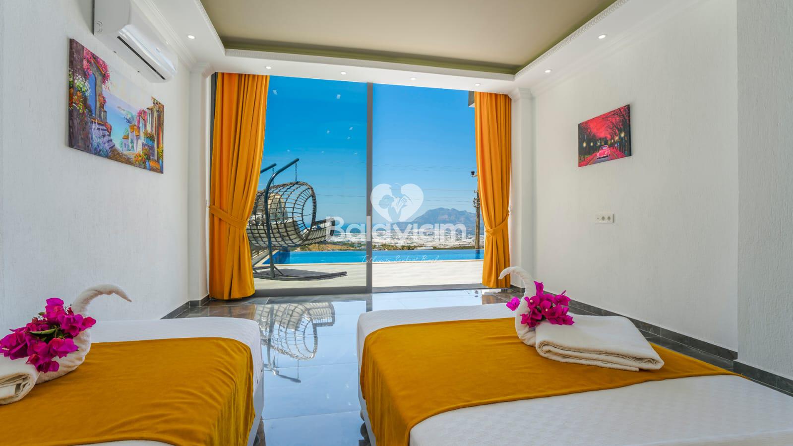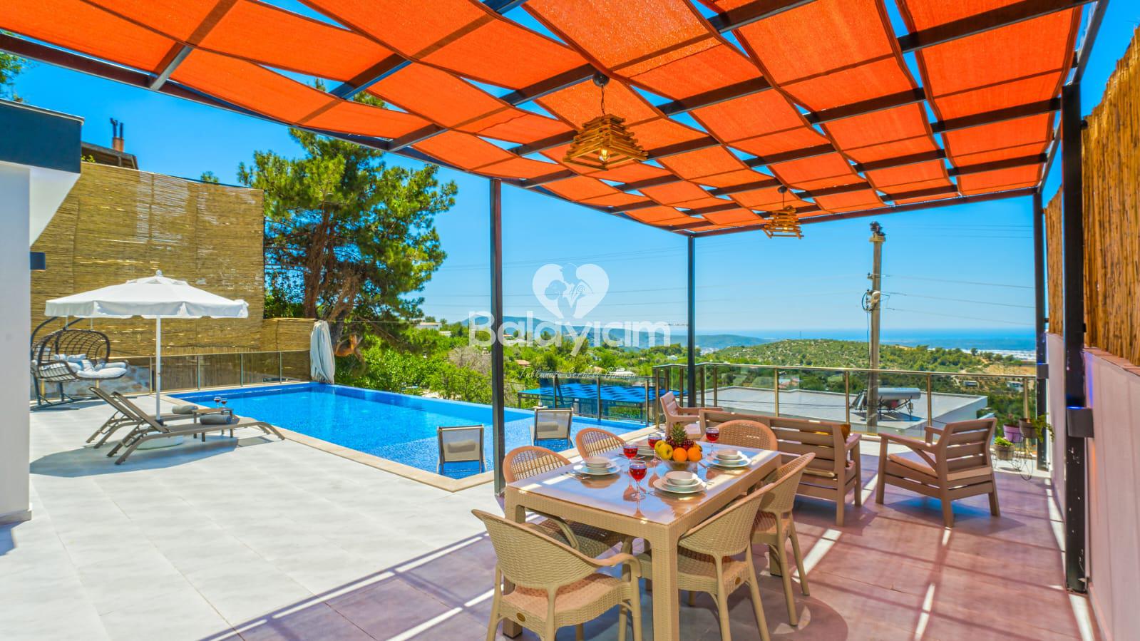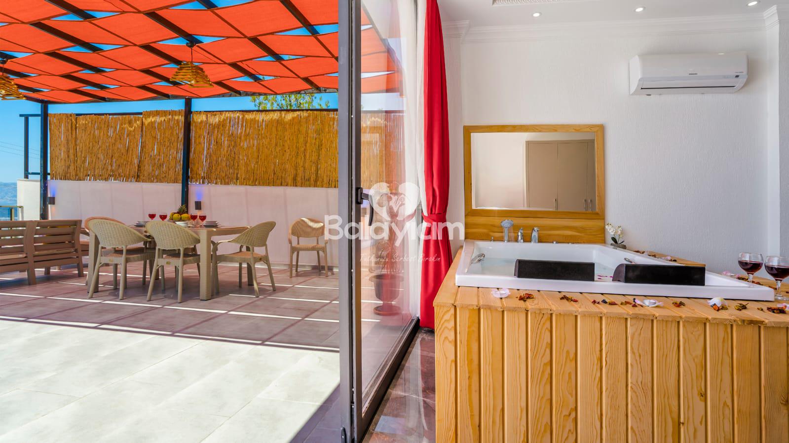 Kalkan'ın huzurlu Üzümlü bölgesinde, size özel bir cennet hayal edin! Villa Piyon, 2022 yılında tamamlanmış modern konforu ile balayı çiftleri ve muhafazakar aileler için mükemmel bir sığınak sunuyor. 🏡