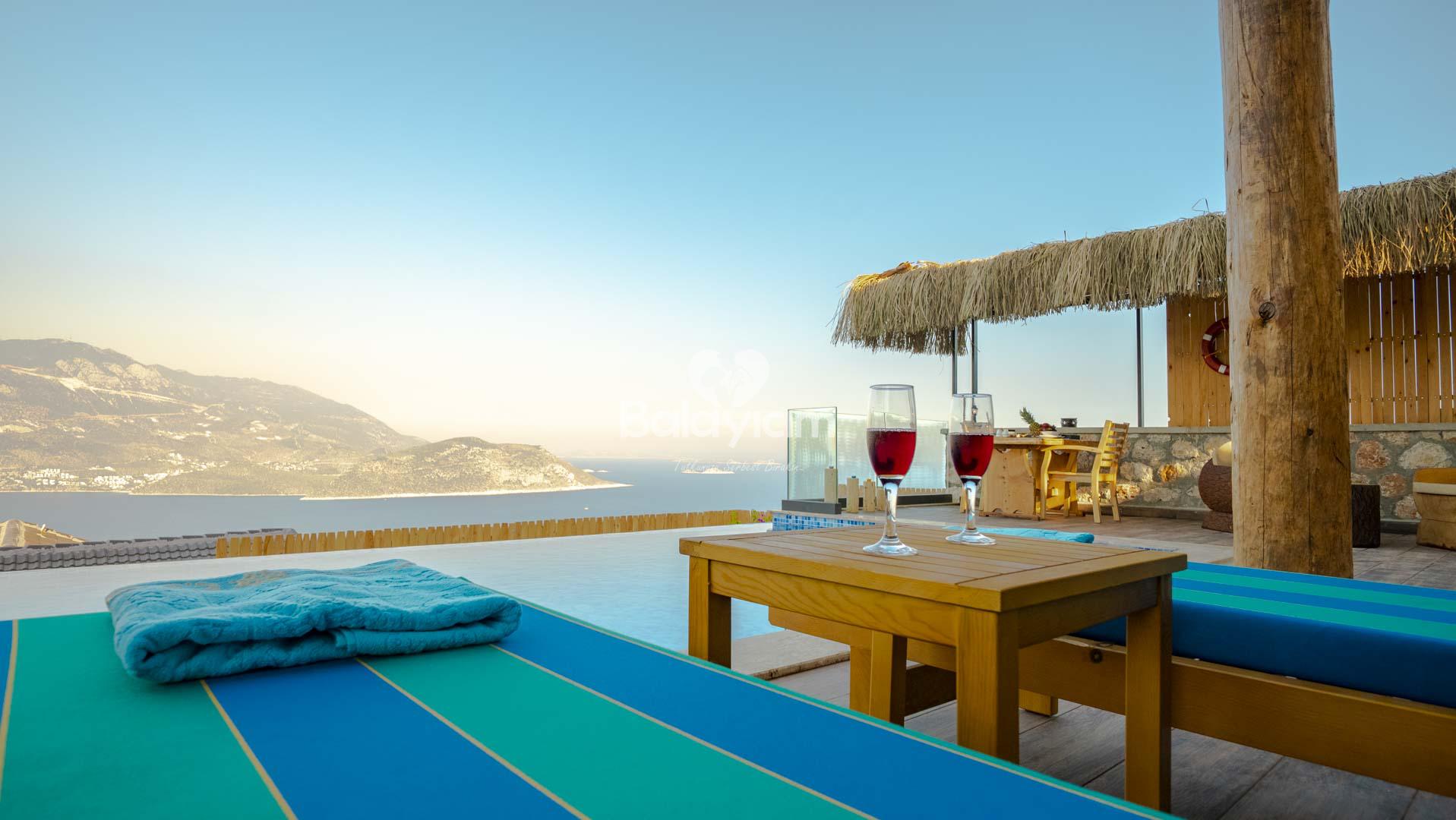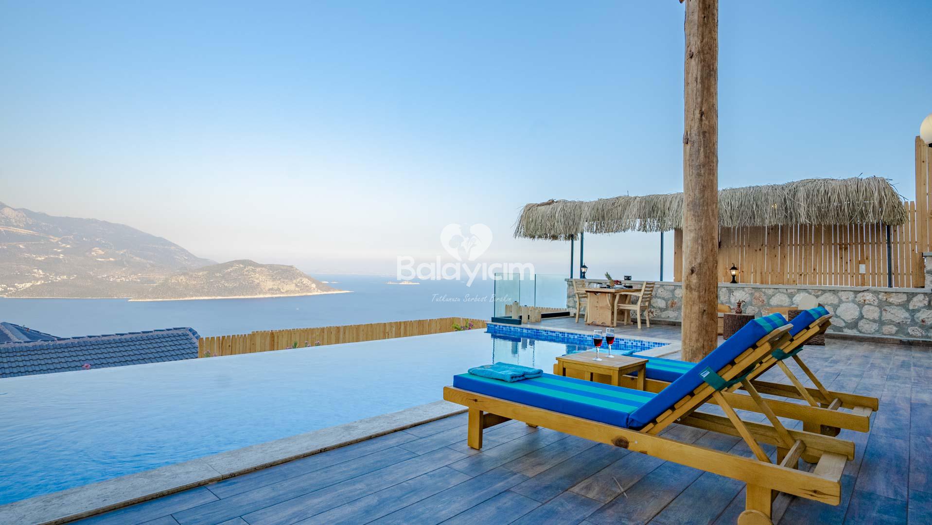 Kalkan'ın büyüleyici Fırnaz Koyu manzarasına hakim, eşsiz bir balayı deneyimi yaşamak isteyenler için özel olarak tasarlanmış Villa Rixsos sizi bekliyor!