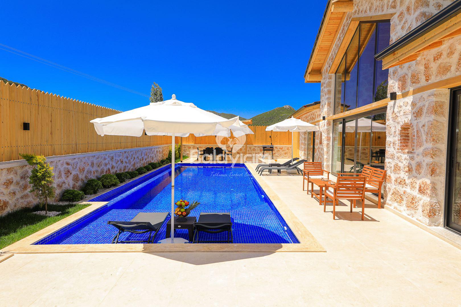 Villa Rustik, Kalkan'ın sakin Sarıbelen mevkisinde yer alıyor. Sessizliğin ve huzurun hakim olduğu bu villa, günlük hayatın stresinden uzaklaşmak isteyenler için ideal bir seçenek.