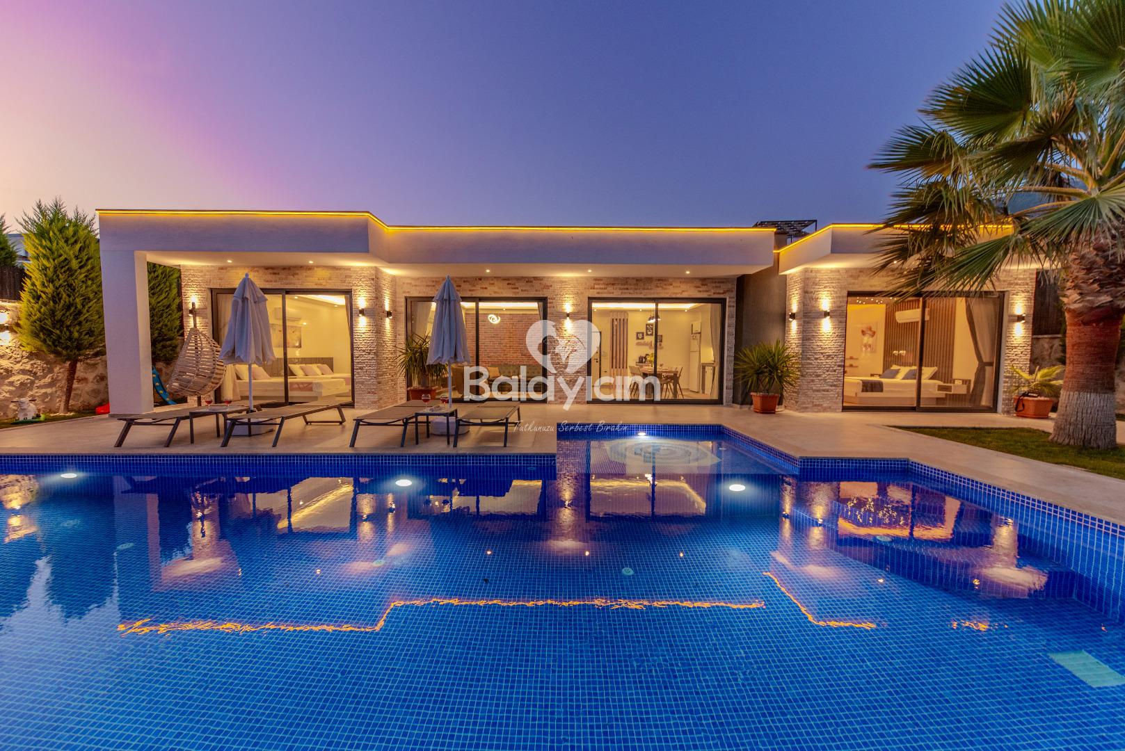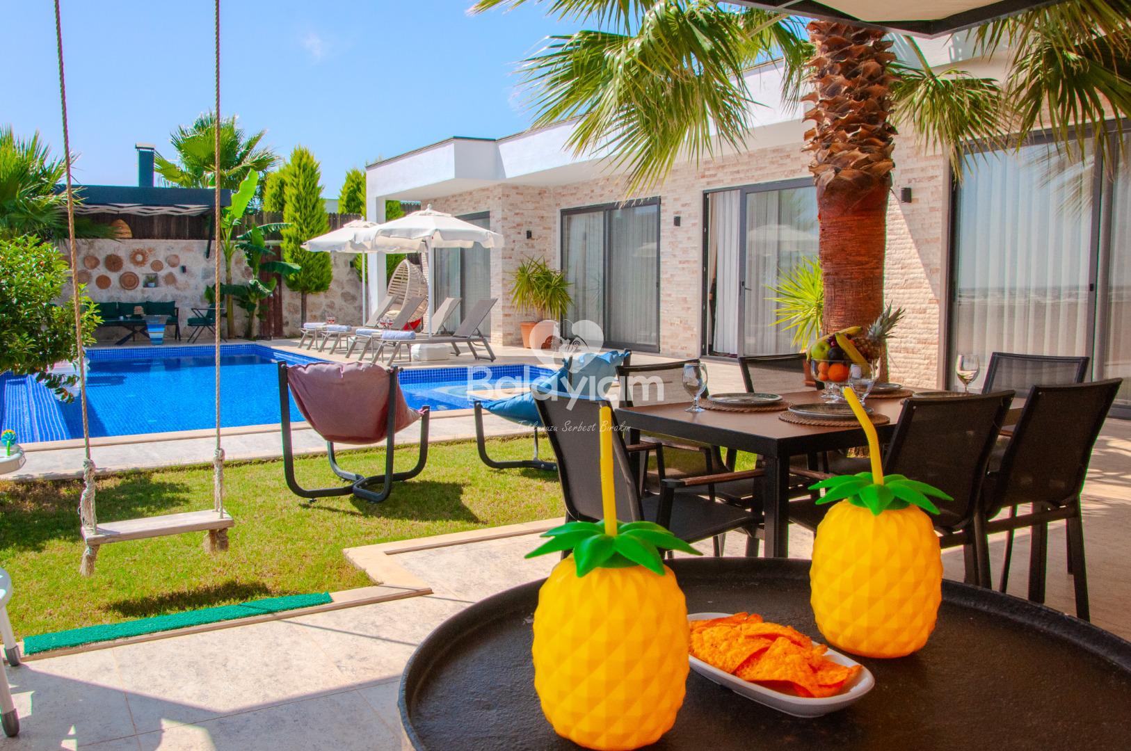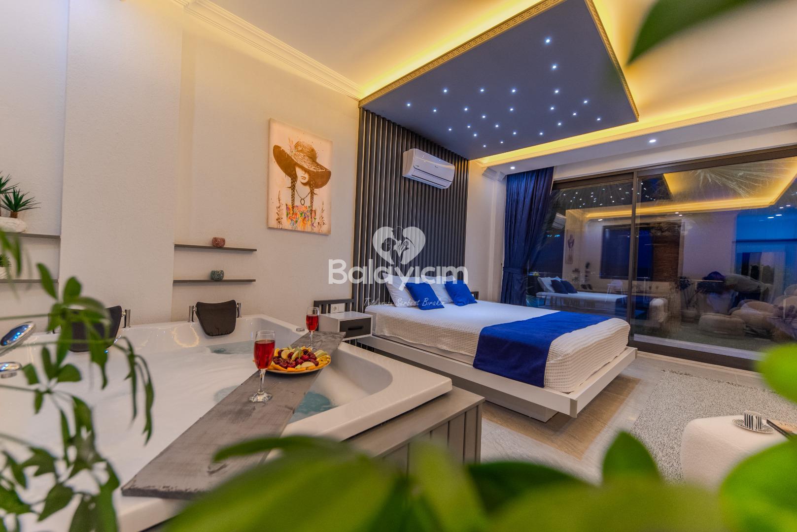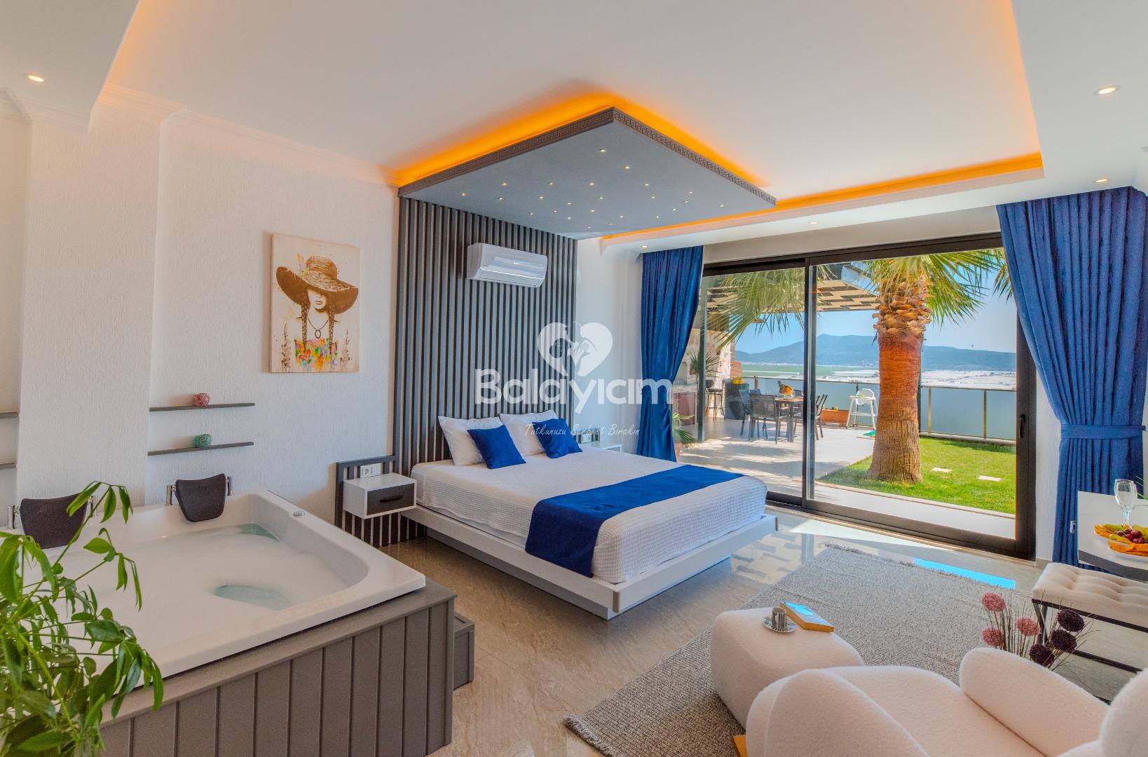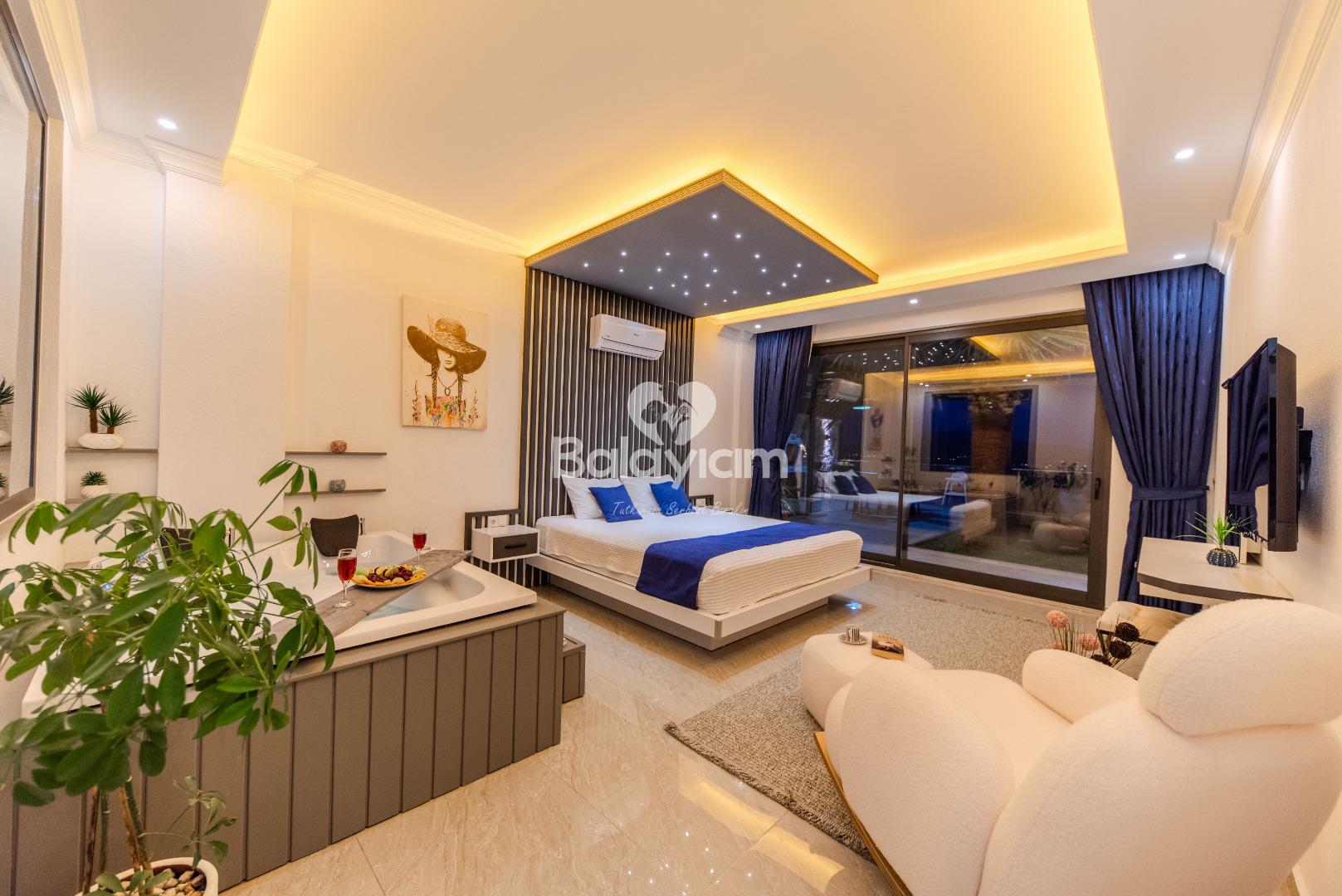 Bu özel villamızda, sevdiklerinizle birlikte unutulmaz anlar yaşayacaksınız. Sabah güneşiyle birlikte özel havuzunuzda yüzebilir, öğleden sonra saunada rahatlayabilir, akşam ise jakuzide günün stresini atabilirsiniz.