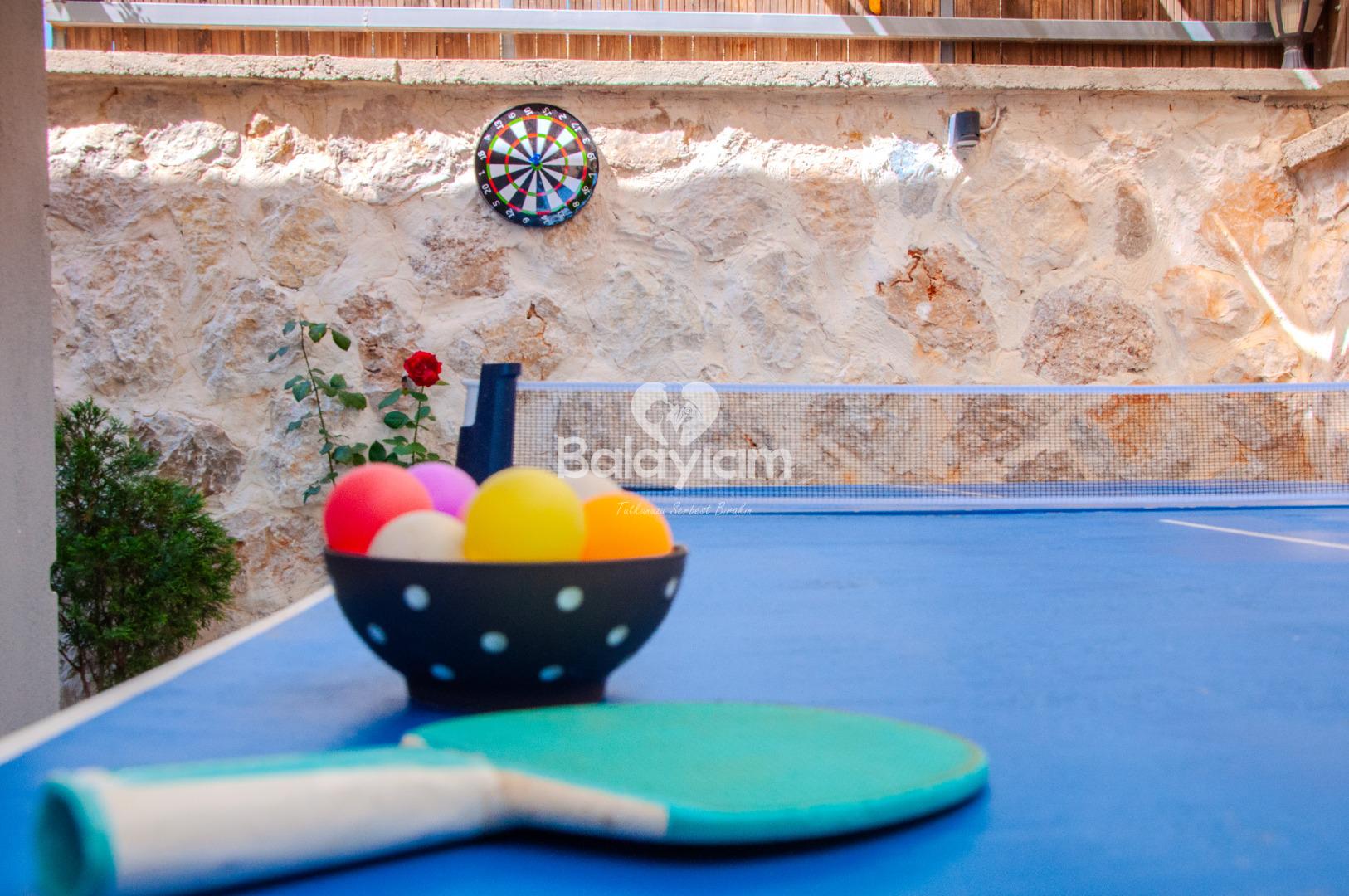 Geniş bahçemizde doğayla iç içe nefes alırken, modern tasarımımızla lüksün tadını çıkarabilirsiniz. Masa tenisi ve langırt masalarımızla eğlenceli turnuvalar düzenleyebilir, ailenizle kaliteli zaman geçirebilirsiniz.