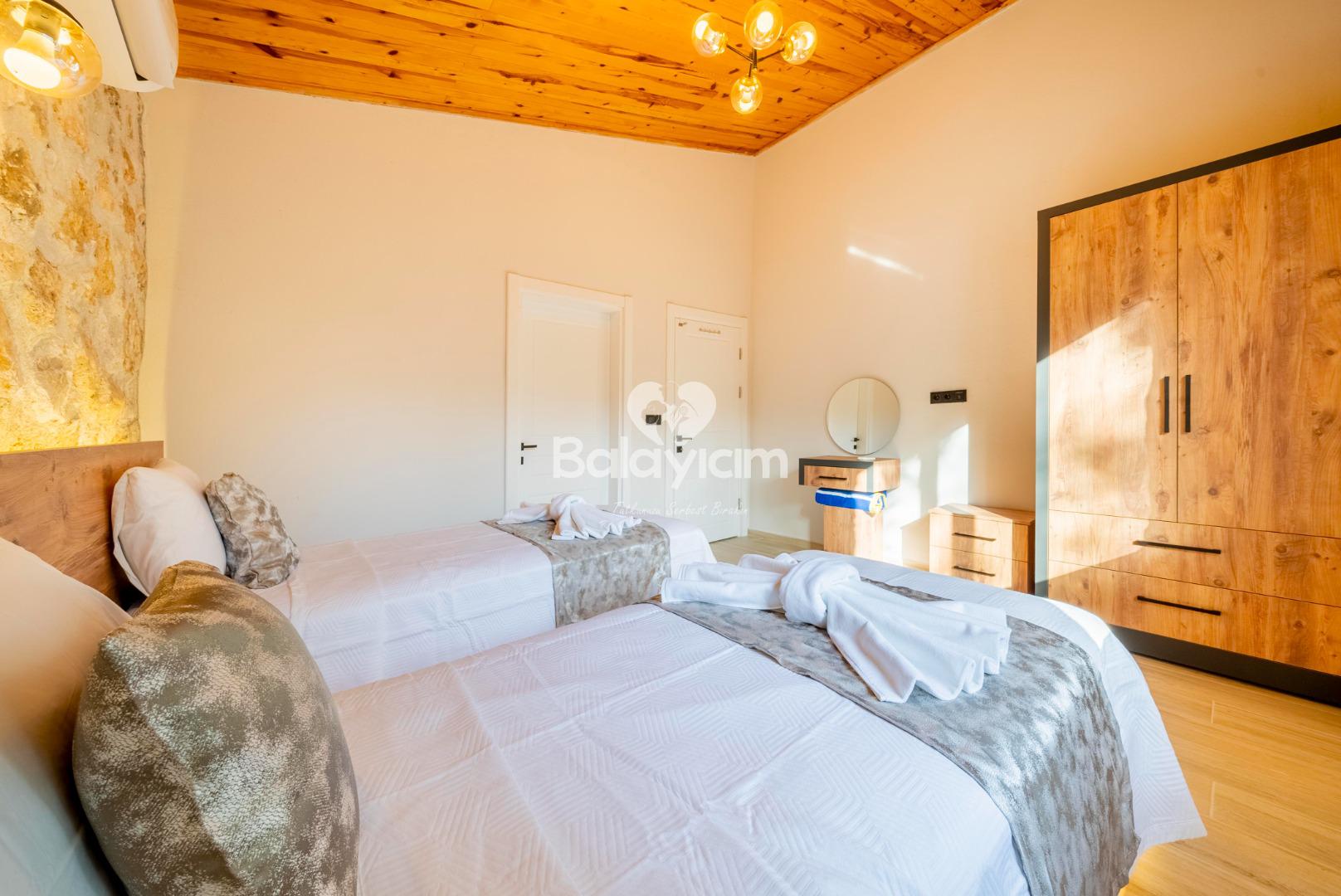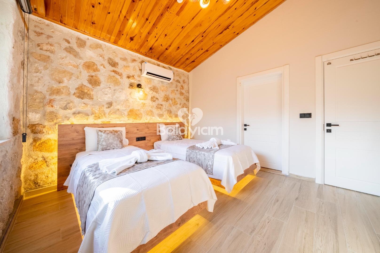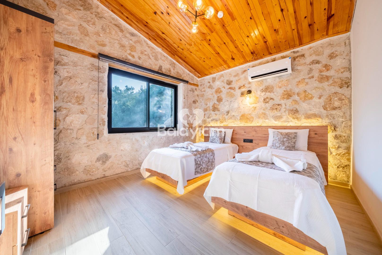 2 suit yatak odalı villamızda 4 kişiye kadar konforlu konaklama imkanı sunuyoruz: