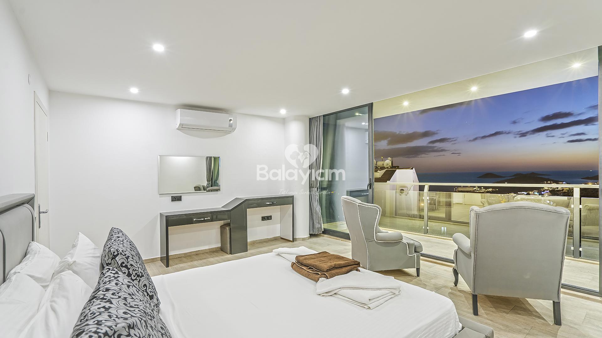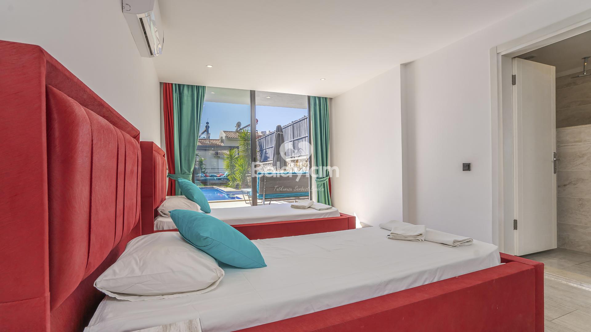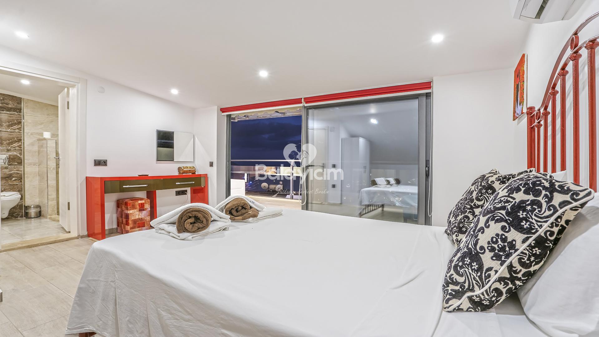 Villa Xsantos'un 4 geniş ve konforlu yatak odası, her misafirimizin kişisel mahremiyetini özenle koruyor. Ancak asıl sürpriz sizi teras katında bekliyor!
