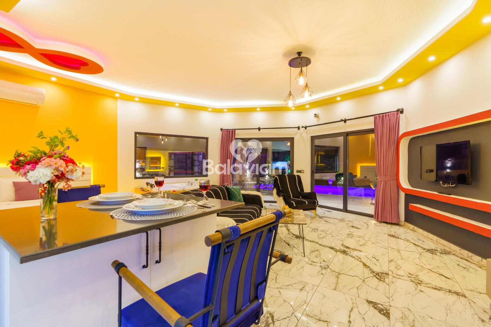 Modern çizgiler ve lüks mobilyalar ile döşenmiş villamızda, balayı çiftleri için özel olarak dizayn edilmiş her köşe, aşkınızın en güzel anılarına tanıklık edecek.