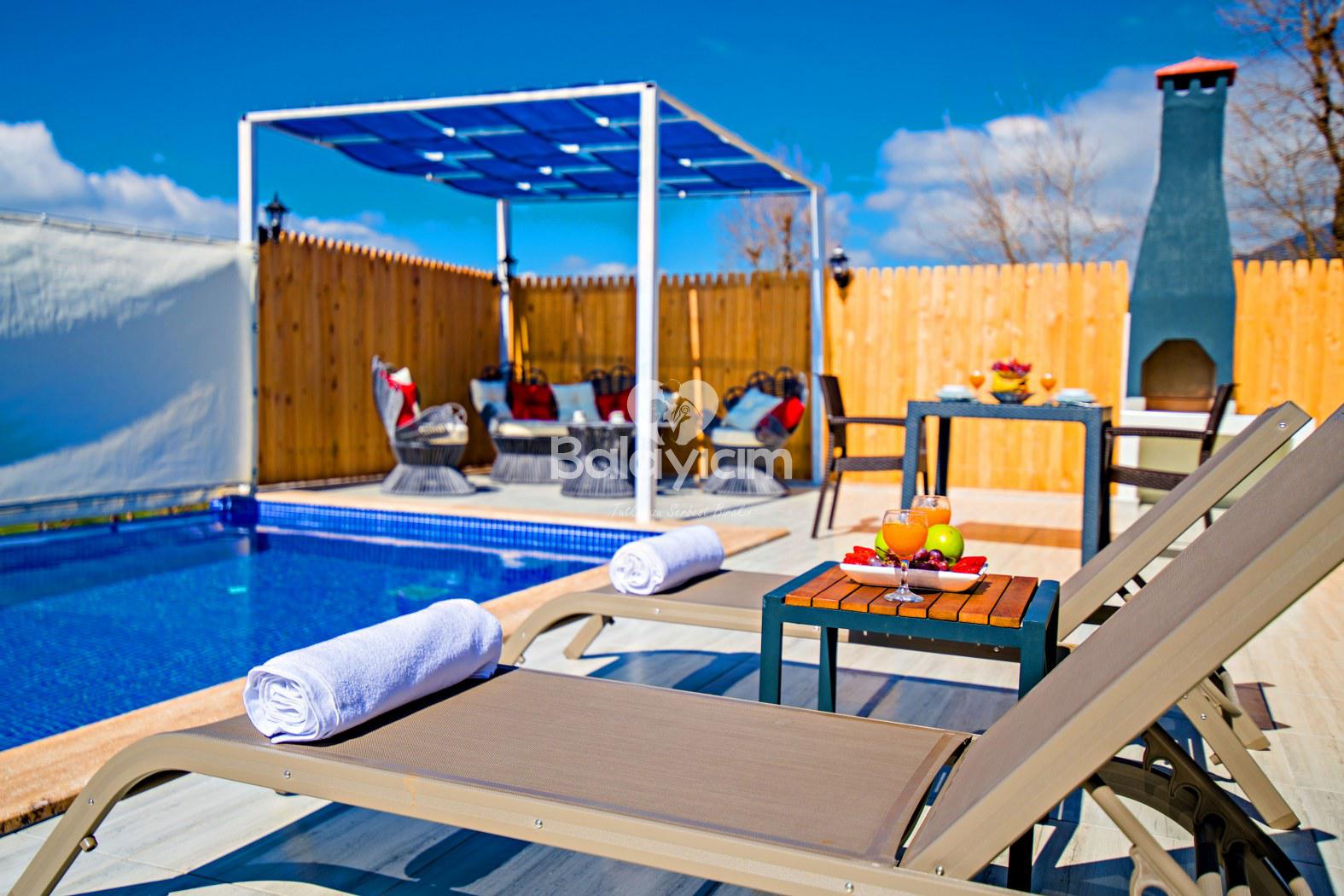 Villa Yücel Balayı, özellikle muhafazakar çiftler ve mahremiyetine önem veren misafirler için ideal bir seçenek! Havuz ve teras alanımız tamamen korunaklı olup, dışarıdan görünmez. Villayı çevreleyen doğal yeşillikler, size tam bir mahremiyet kalkanı oluşturuyor. Bu sayede gönül rahatlığıyla, sadece kendinize ait bu özel dünyada tatilinizin keyfini çıkarabilirsiniz.