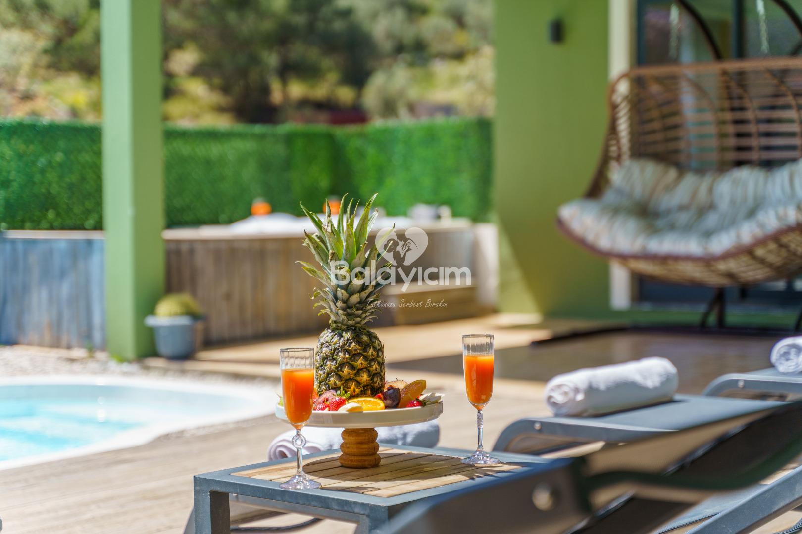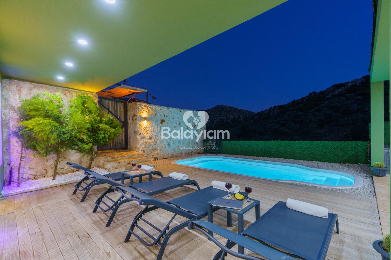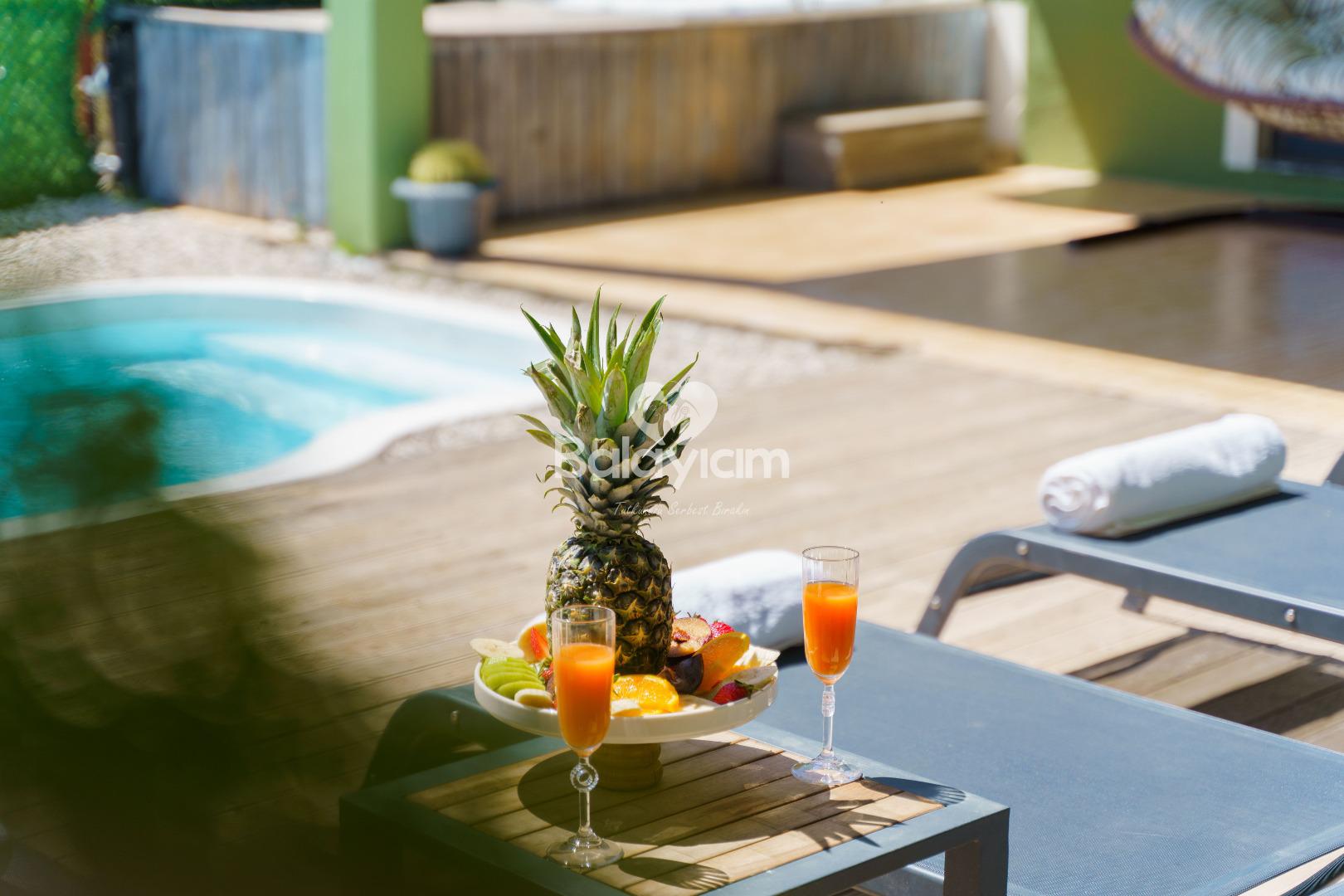 Dışarıdan görünmeyen, tamamen size özel korunaklı havuz terası ile mahremiyet garantisi