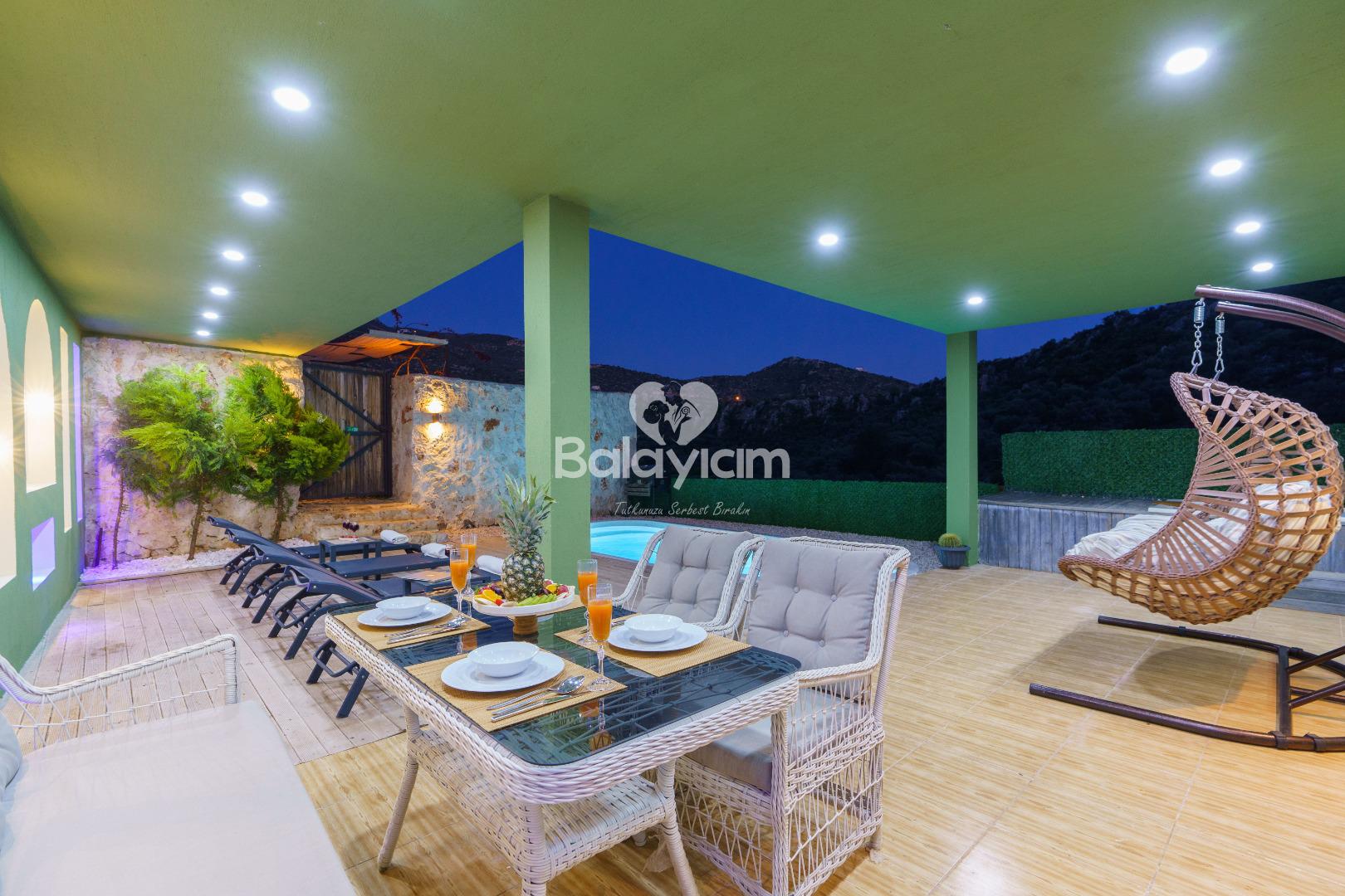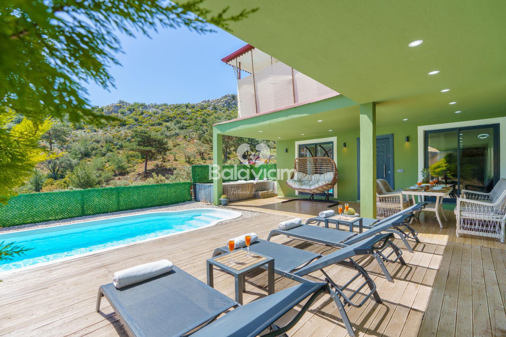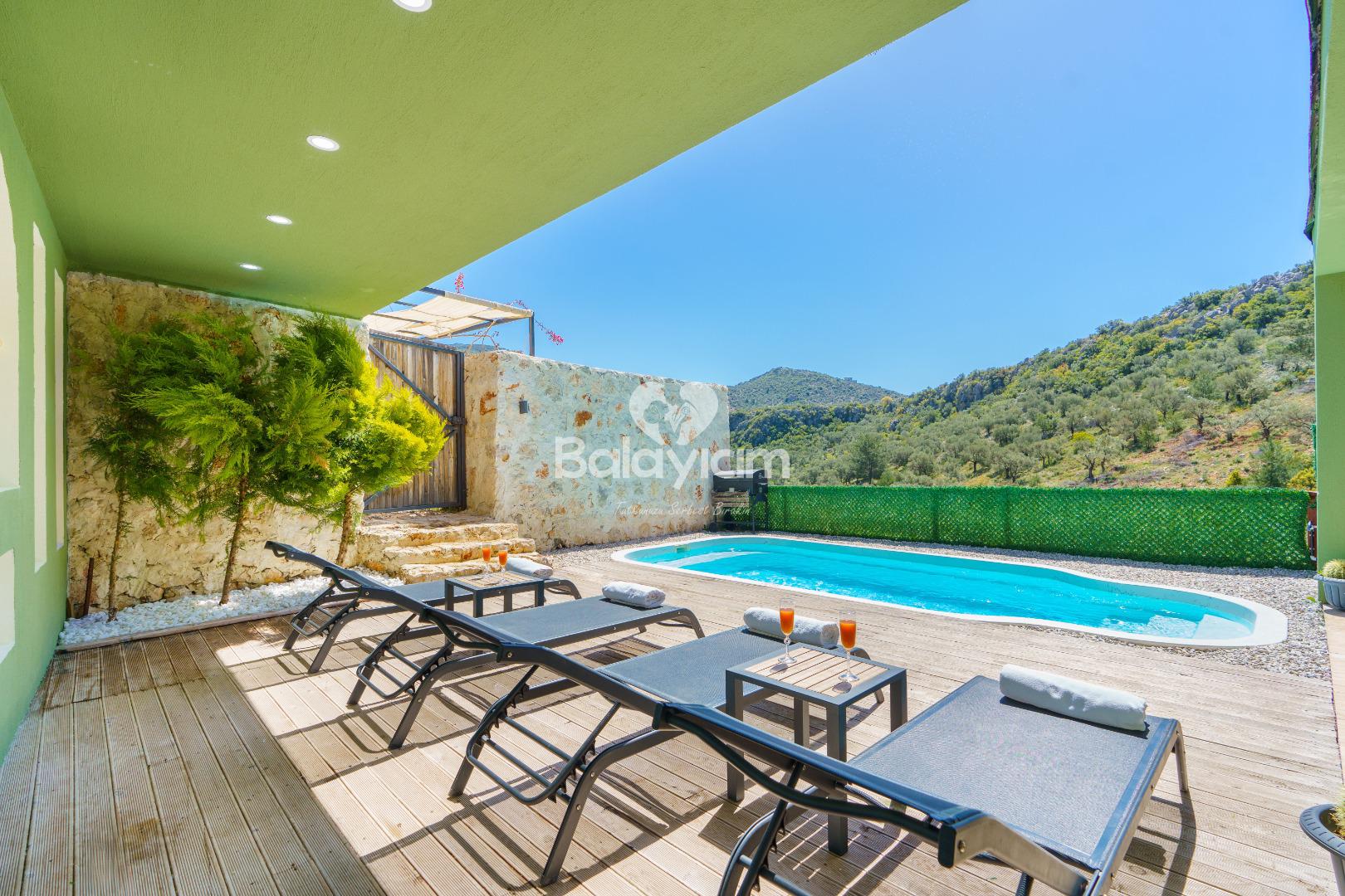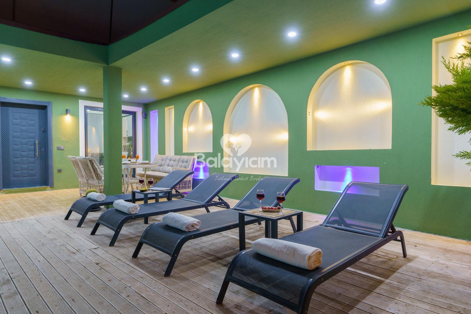 Dışarıdan görünmeyen, tamamen size özel korunaklı havuz terası ile mahremiyet garantisi